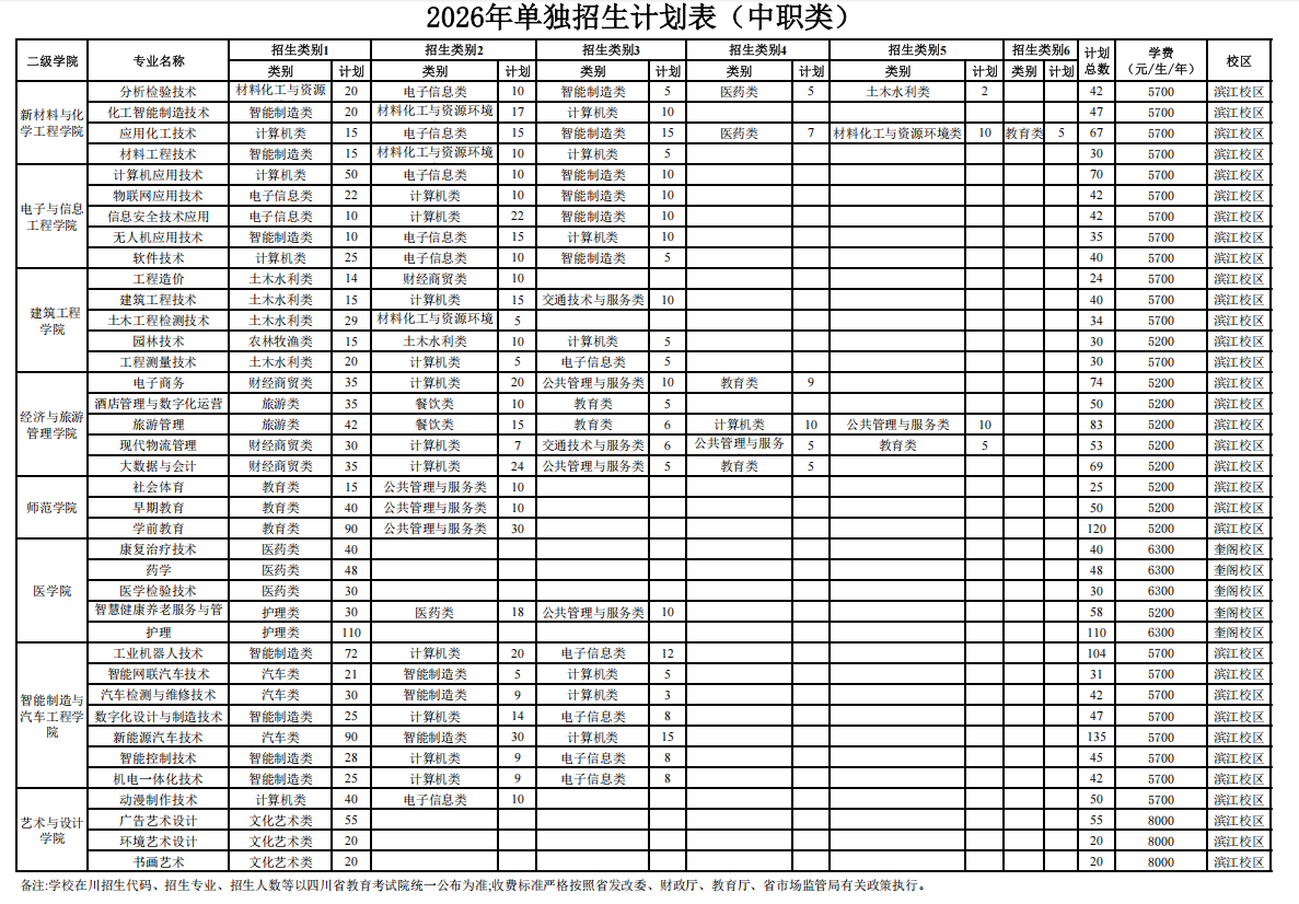 2026年单独招生计划表(中职类)