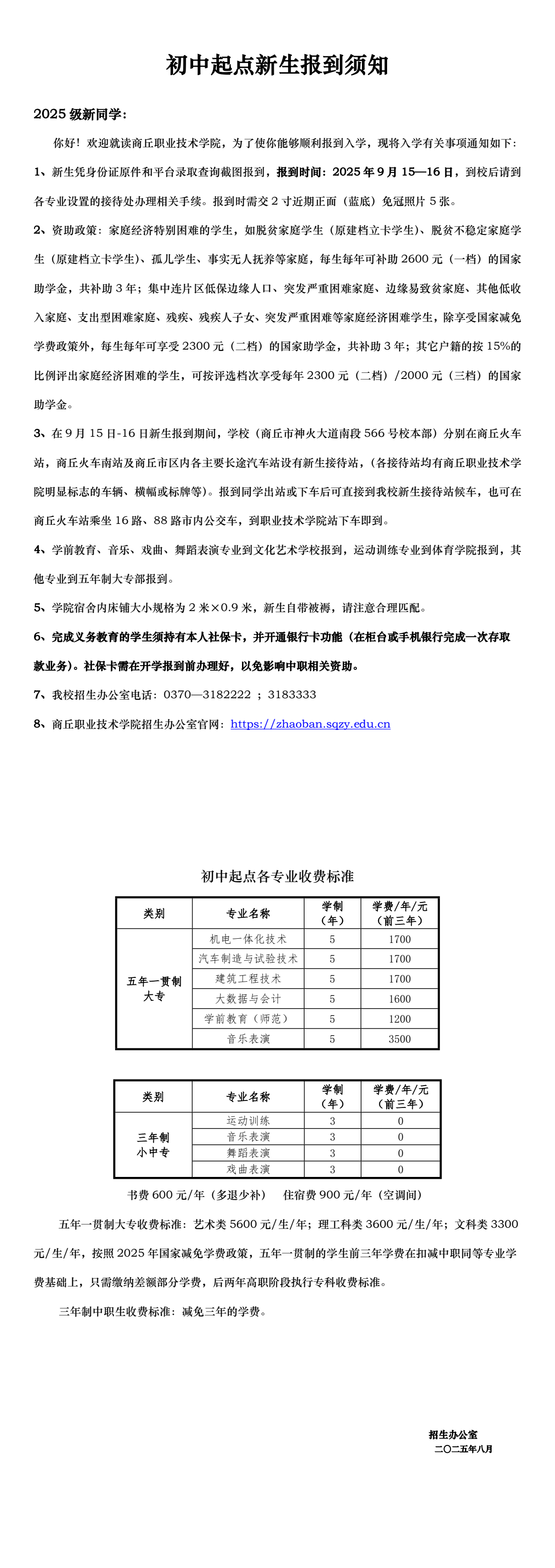 2025年我校初中起点新生报到须知