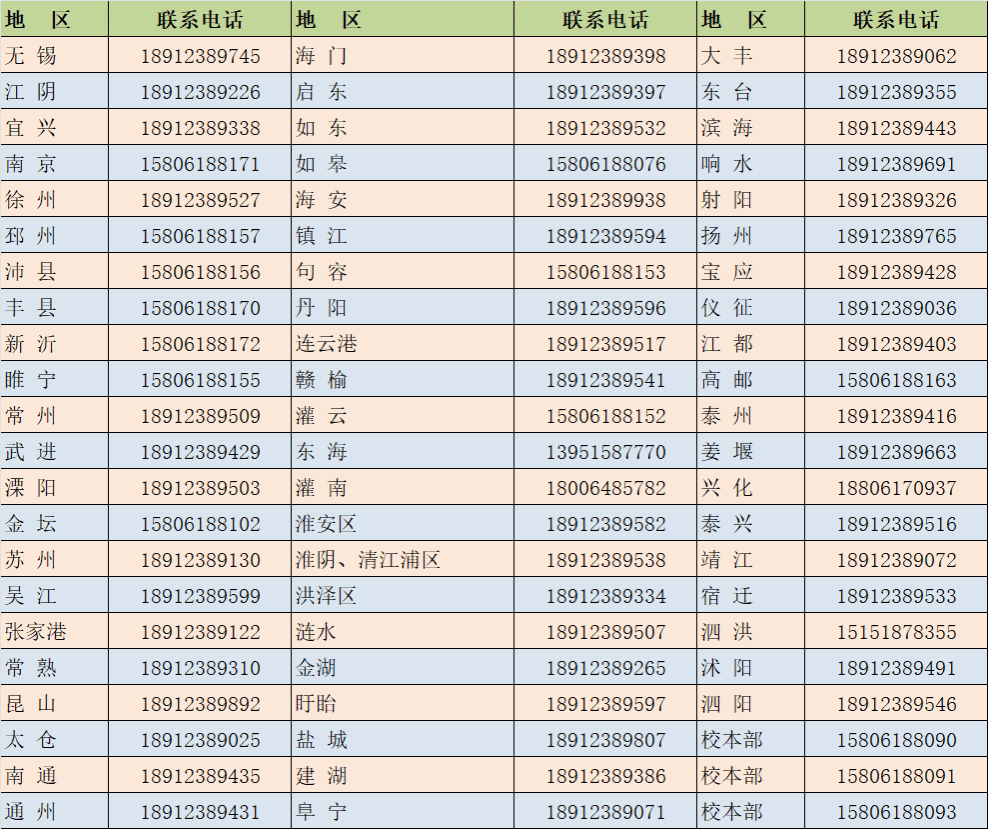 无锡太湖学院2024年江苏各地区招生咨询电话一览表