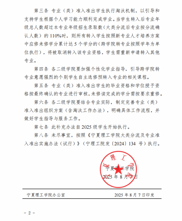 宁夏理工学院大类分流及专业准入准出实施办法(试行)补充办法