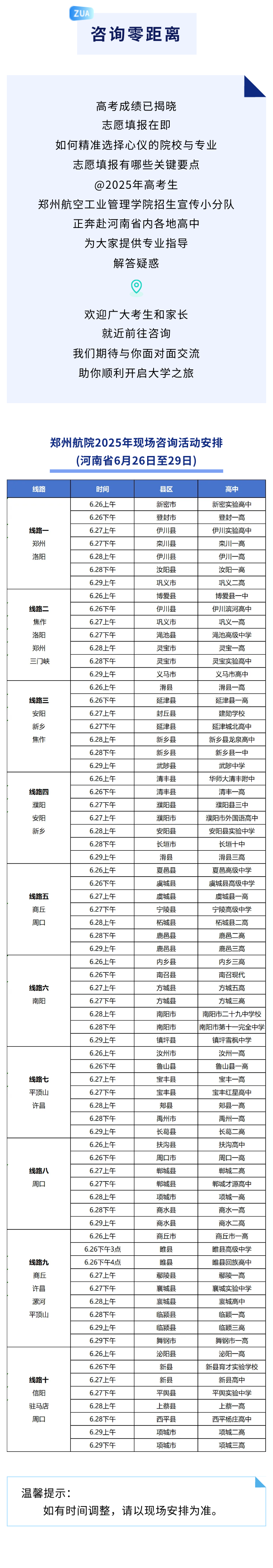 咨询零距离——郑州航院现场咨询活动安排(省内6月26日至29日)