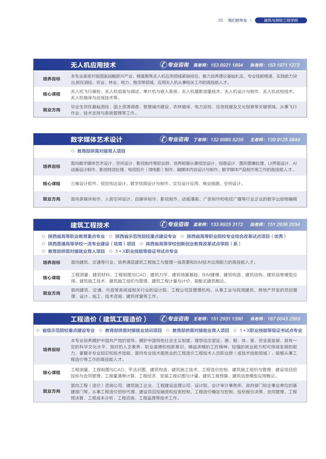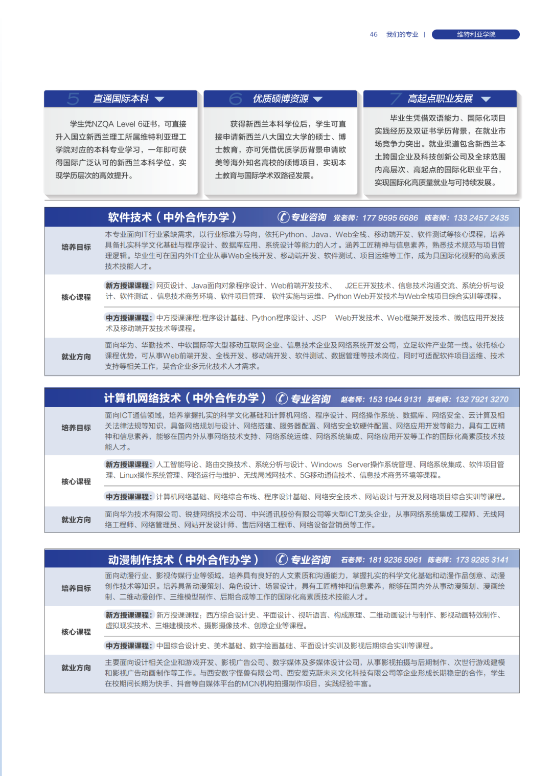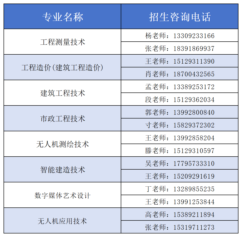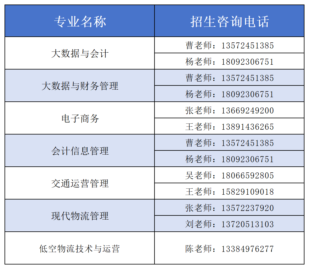 各学院专业咨询联系电话