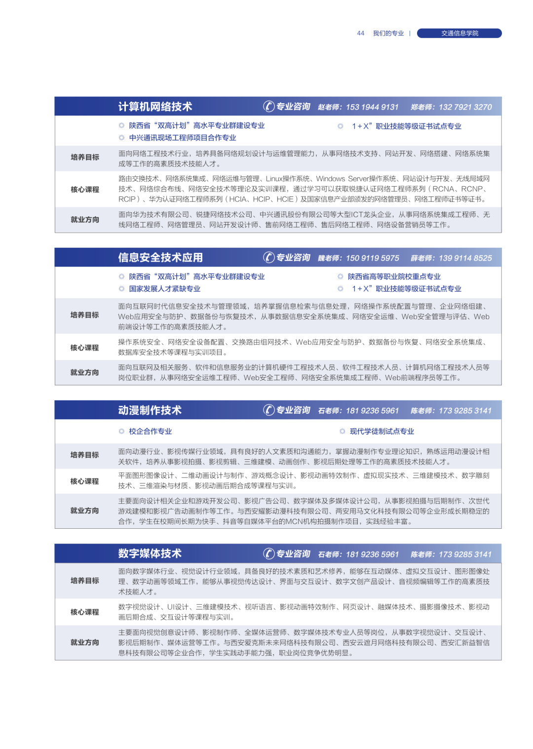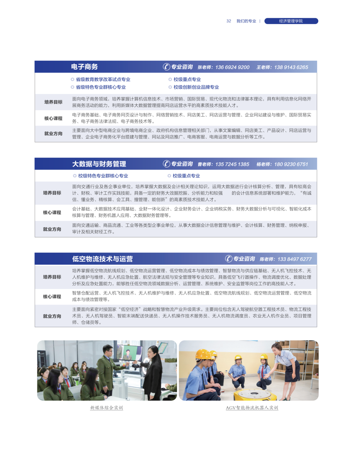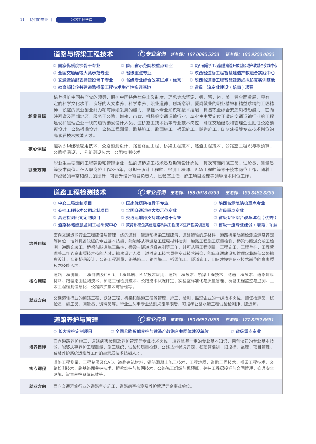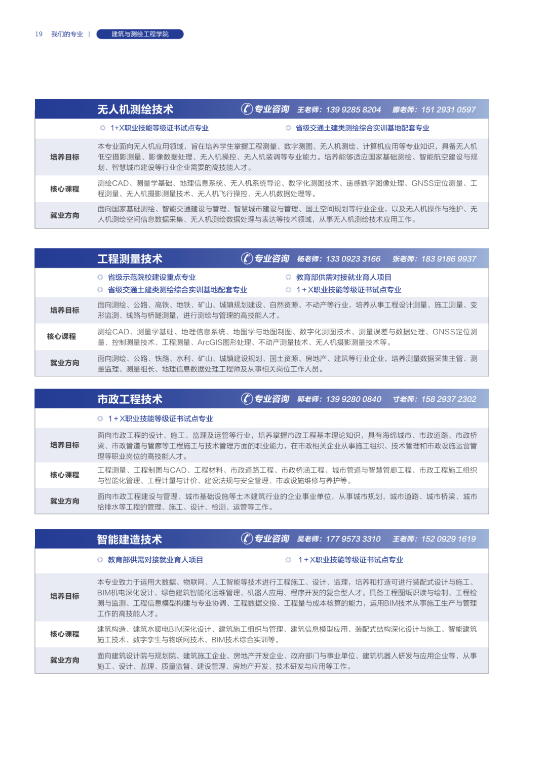 各学院专业咨询联系电话