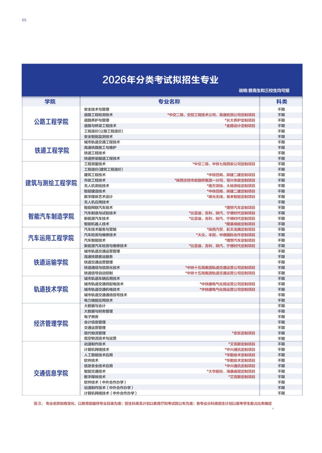 2026年分类考试拟招生专业