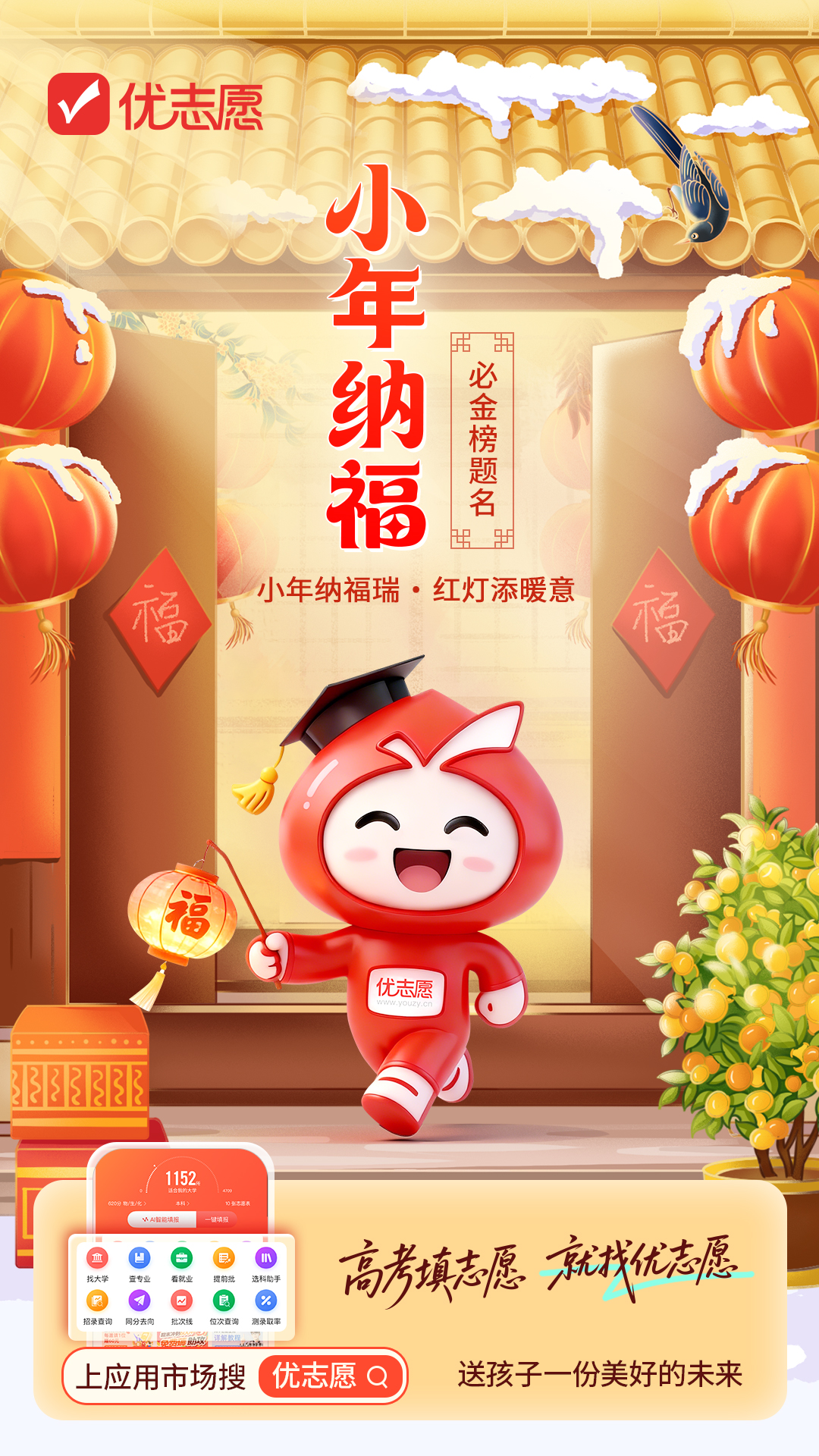 一盏红灯笼温暖寒窗岁月,一碗灶糖甜化备考压力,优志愿始终伴大家左右,让每一份付出都能奔赴最心仪的远方。