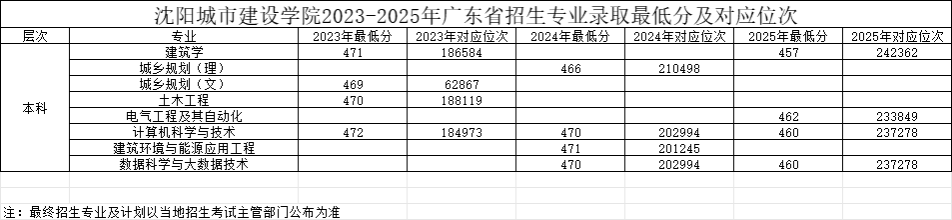 广东2023-2025年招生专业录取最低分数线及对应位次