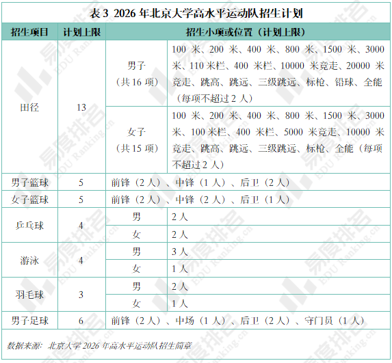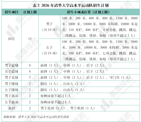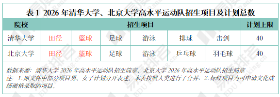 一、清华、北大2026年高水平运动队招生均不超过40人