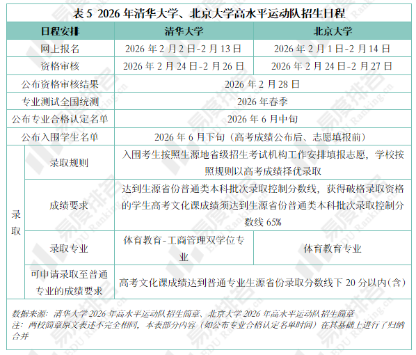 2026年1月26日、27日,清华大学、北京大学相继发布2026年高水平运动队招生简章,正式启动本年度高水平运动队招生工作。