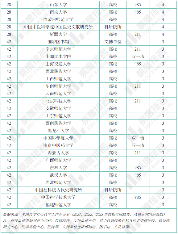 除高校外,中国社科院各研究所、故宫博物院等文博单位亦有多项课题入选。
