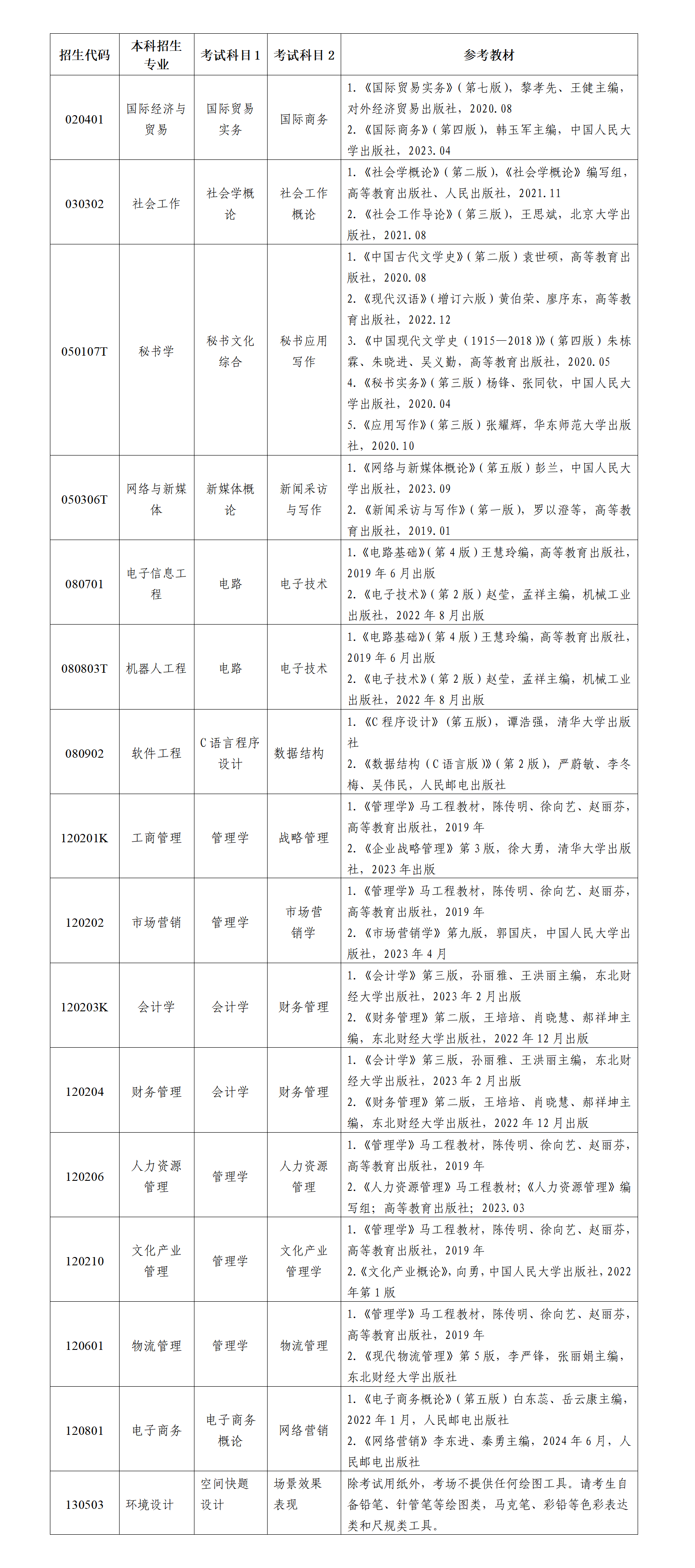 1.普通类专业采用笔试形式测试。包括国际经济与贸易、社会工作、秘书学、网络与新媒体、电子信息工程、机器人工程、软件工程、工商管理、市场营销、会计学、财务管理、人力资源管理、物流管理、电子商务、文化产业管理专业。