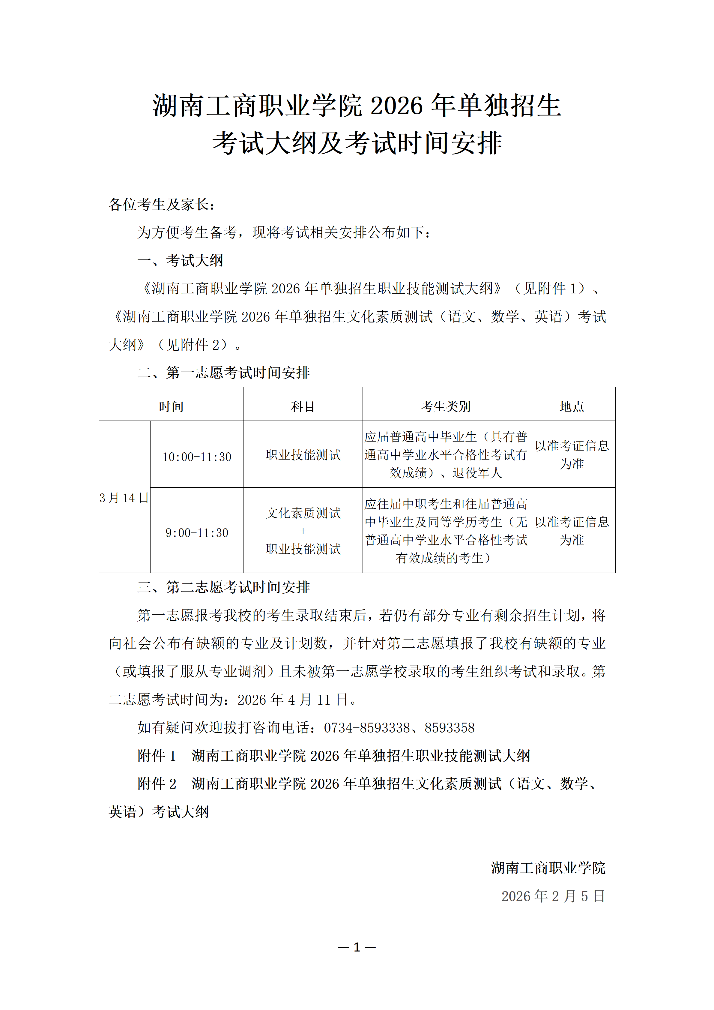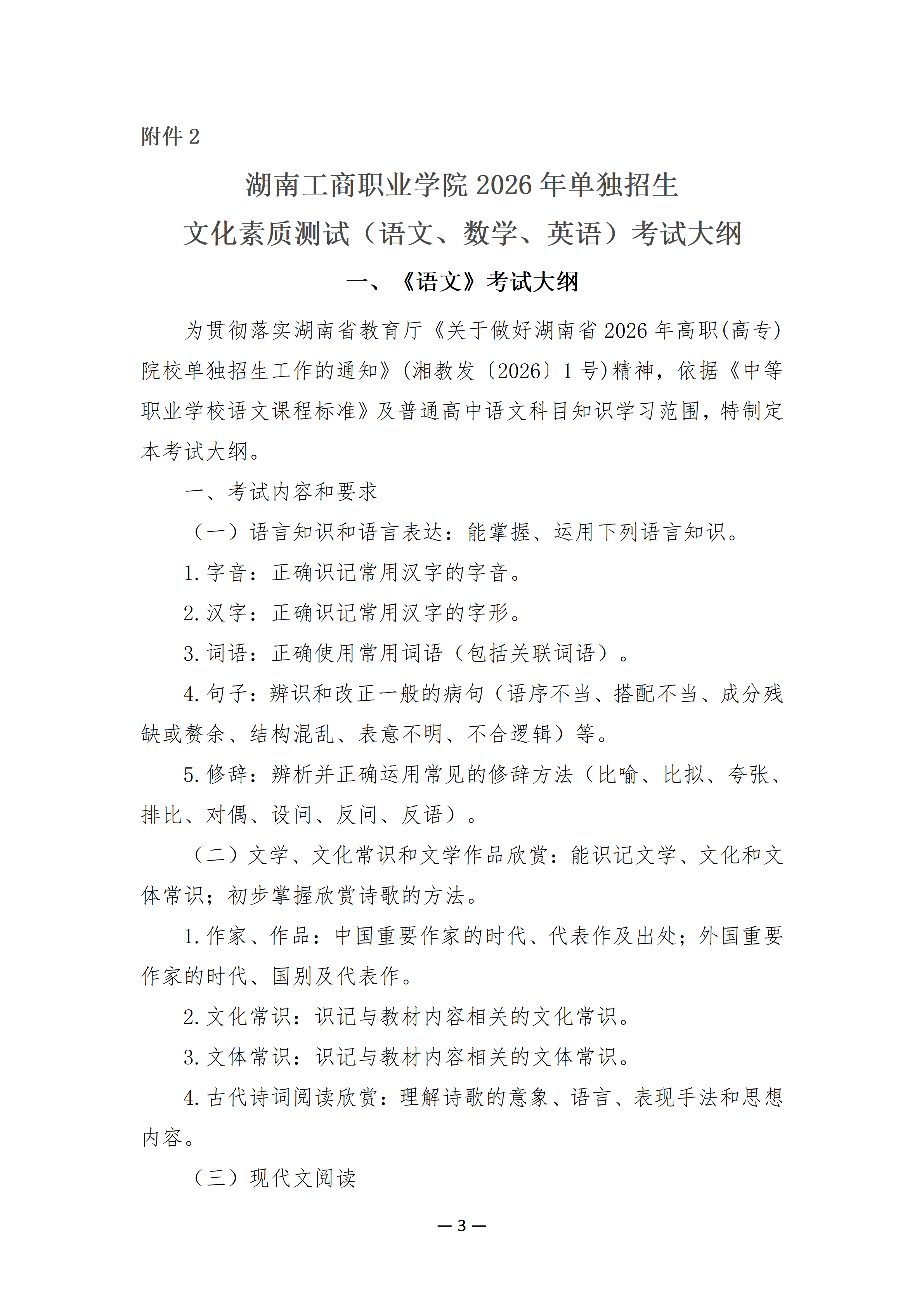 2026年单招考试大纲及考试时间安排
