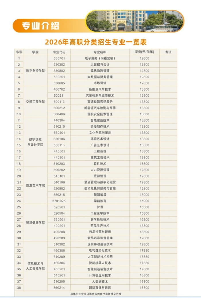 海南工商职业学院2026年高职分类招生简章