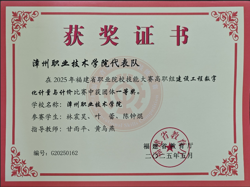 05教学资源与平台配备与专业相关的数字资源,必修课程、专业核心课程配套数字资源。配备已建和在建的精品在线课程、教学资源库等数字资源。专业已有省级精品课程《建筑工程计量与计价》,省级精品在线课程《建筑BIM建模与计量》,校级精品在线开放课程《结构识图》立项。专业配备了虚拟仿真实训实验设备。06实验室与设备建筑工程学院建设了可用于包括工程造价专业在内的专业群基础技能训练和岗位技能训练的实训中心。工程造价综合实训室配备建筑施工图、结构施工图、安装施工图及标准图集。用于手工和软件编制工程预算、工程量清单、工程量清单报价、工程结算等工程造价文件的理实一体化教学与实训。07校企/实习基地具有稳定的校外实训基地,与福建省泷澄建设集团有限公司、福建光正工程项目管理有限公司、福建省中孚检测技术有限公司等企业合作建立校外实训基地。实训设施齐备,实训岗位、实训指导教师确定,实训管理及实施规章制度齐全。08教师/学生成果工程造价专业学生多次在国家级以及省级工程造价专业技能大赛、福建省职业院校技能大赛(高职组)建筑装饰技术应用团体赛中获奖,成绩优异,并在工程造价行业技能大赛中也均取得优异成绩。09教学成果专业已有省级精品课程《建筑工程计量与计价》,省级精品在线课程《建筑BIM建模与计量》,校级精品在线开放课程《结构识图》立项。校企“双元”合作特色教材《工程造价控制》、《工程招投标与合同管理》立项。END