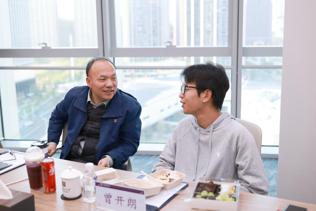 2月2日,深圳理工大学党委书记朱迪俭、学生事务处处长李明与2025级本科生曾开朗、卢俞充、白子正、何志远开展生涯导师交谈会,在轻松愉快的交流氛围中倾听学子心声,共话学业规划与未来发展方向。