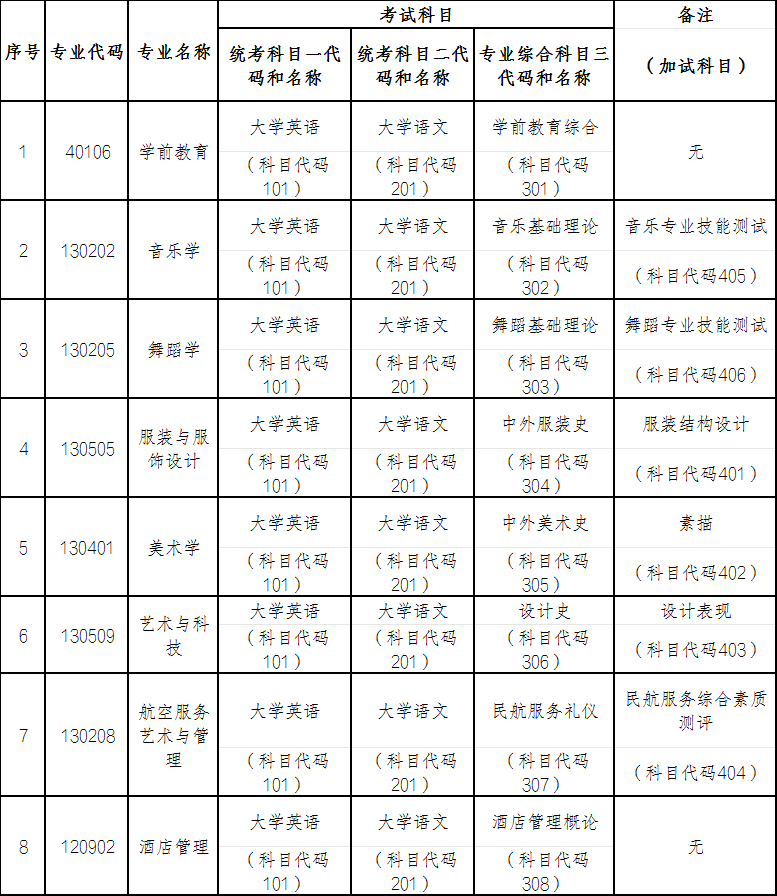 1.2026年我校专升本考试由本校组织,专业招生考试实行“统考科目一(150分)+统考科目二(150分)+专业综合科目(200分)”的入学测试方式进行。若专业有加试科目,分数将调整为“统考科目一(150分)+统考科目二(150分)+专业综合科目(100分)+加试科目(100分)”。各专业具体考试科目如下: