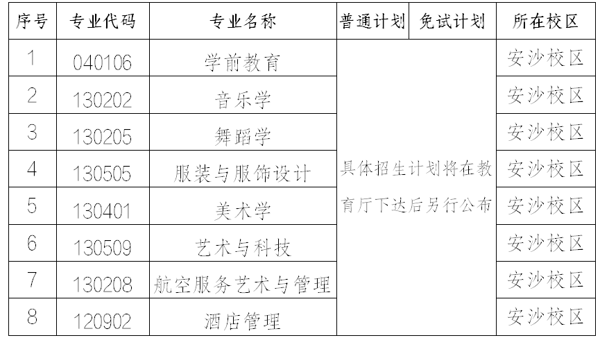 第十条学校根据湖南省教育厅下达的专升本计划,根据学校办学定位、发展规划、办学条件、社会需求、生源状况、教学质量及毕业生就业状况等因素,由招生就业处会同教务处共同确定2026年专升本招生专业和计划,经学校专升本招生考试工作领导小组审定,面向社会公布。学校2026年专升本招生计划分为以下几种类型: