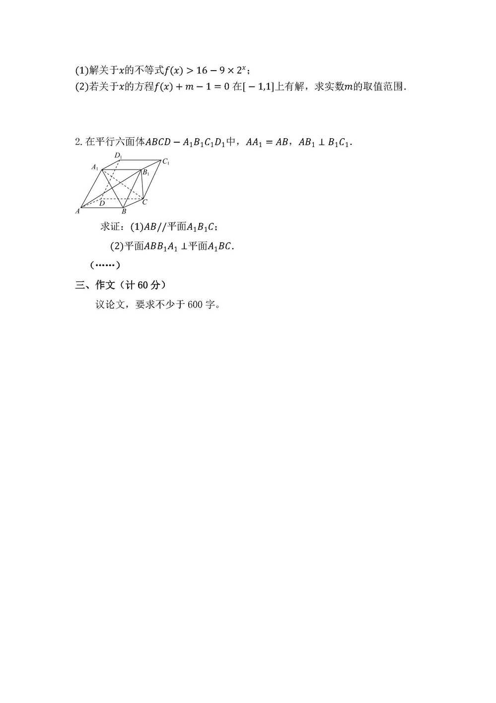 南京机电职业技术学院2026年提前招生综合素质测试样卷