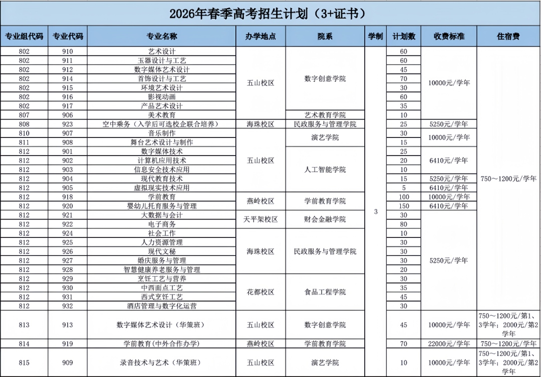 2026年春季高考招生计划