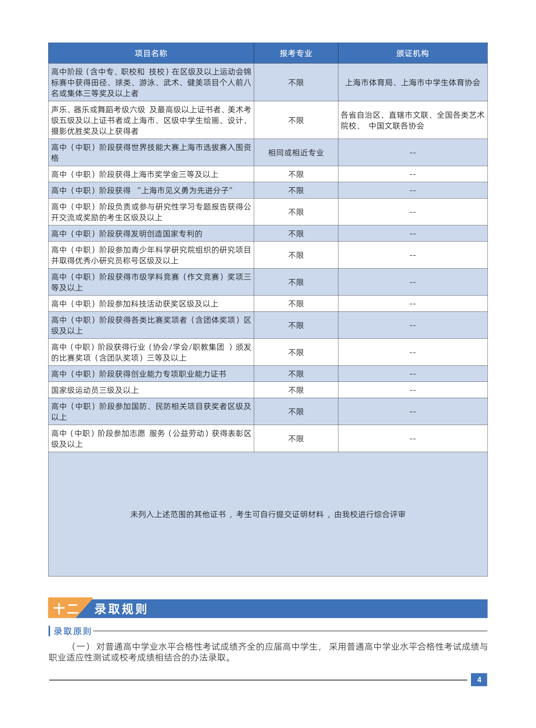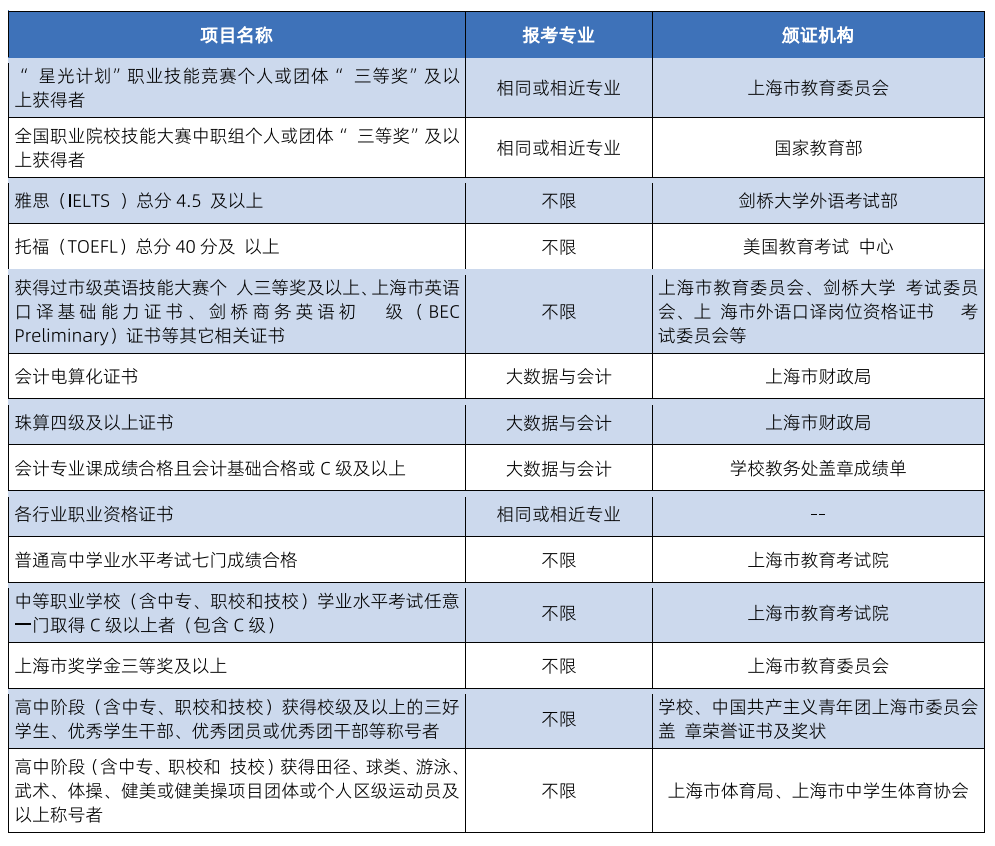 (二)符合下表中一项条件者可报名参加“免笔试,面试入学”考试