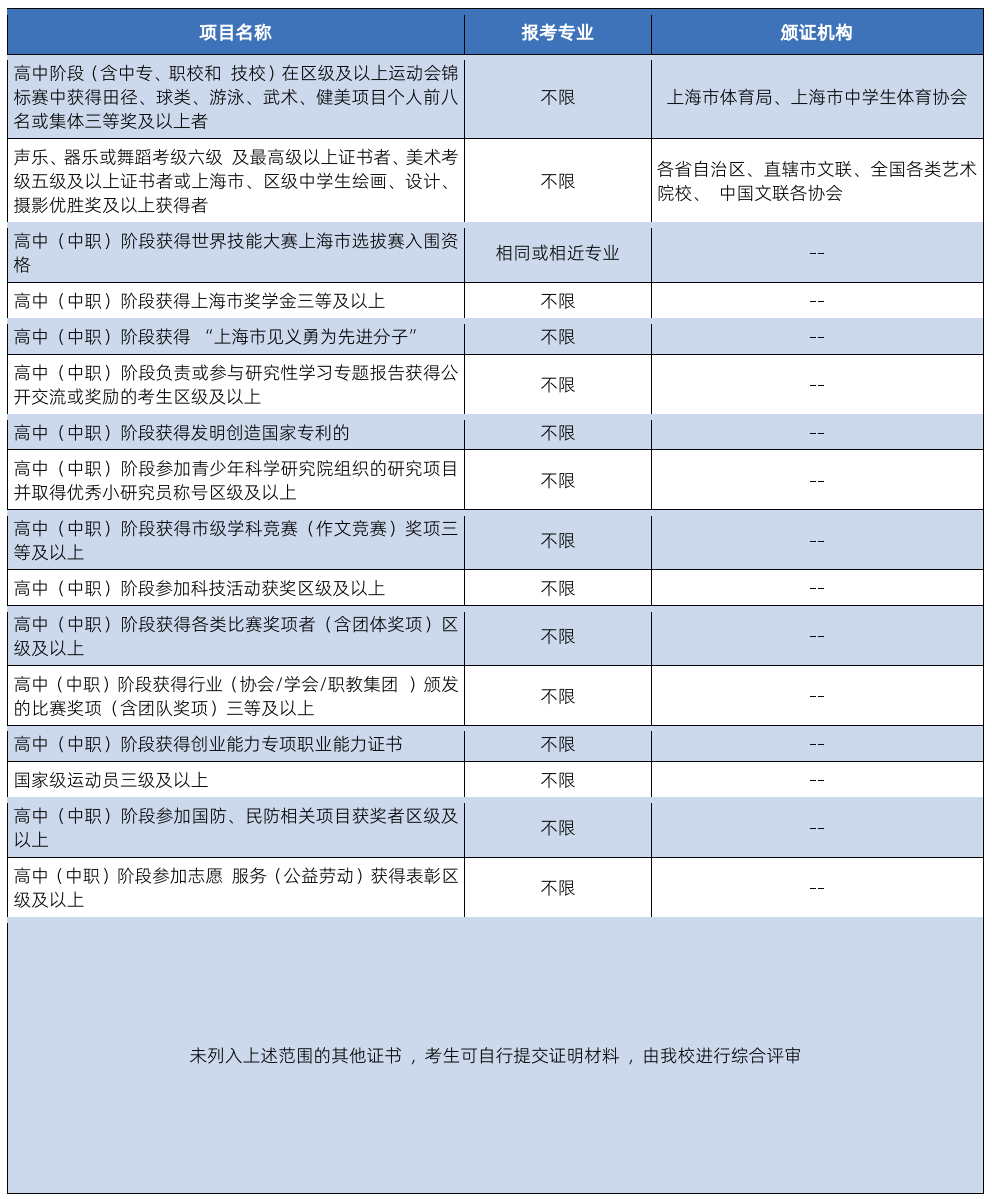 (三)依据《上海市教育委员会关于做好2026年上海市普通高校考试招生报名工作的通知》(沪教委学〔2025〕47号 )规定,通过专科层次依法自主招生录取的考生不得参加文件规定的其他考试;未通过专科层次依法自主招生录取且符合报名条件的考生,可参加文件规定的其他考试。