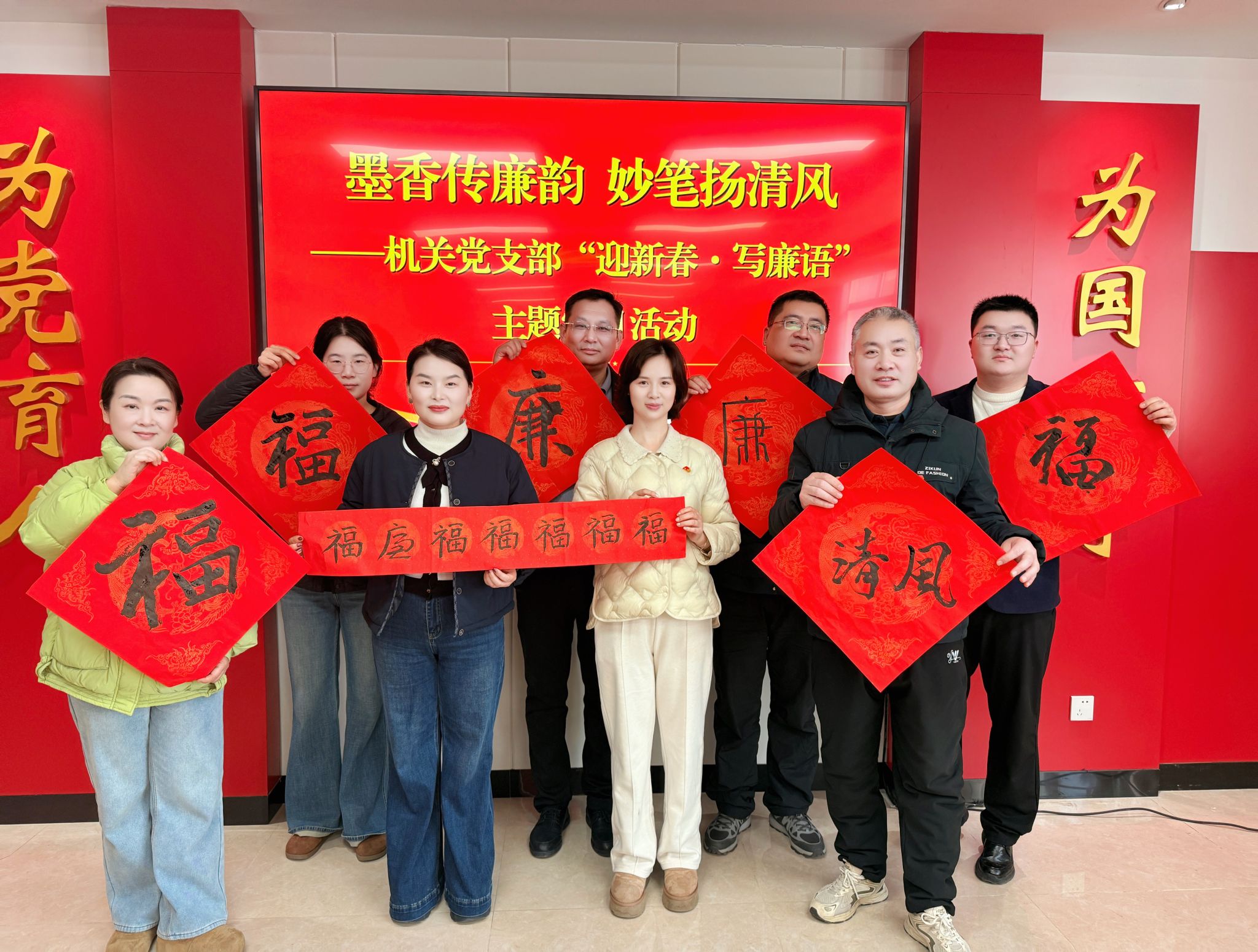 春节将至,年味渐浓。2月13日上午,机关党支部以“迎新春·写廉语·话廉洁”为主题,组织开展了一场别开生面的主题党日活动。全体党员以笔墨为桥,将廉洁文化融入传统年俗,于挥毫泼墨间传递清风正气,为新春佳节添上一抹独特的“年味+廉味”。