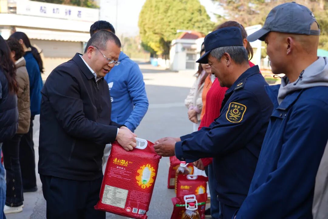 向晓明副校长前往杨林校区深入校园安保岗、宿管值班室、后勤保障点等值守点位,亲切看望并慰问春节期间仍坚守岗位的教职工,并为他们送上精心准备的新春慰问品,同时致以诚挚问候与美好祝福。
