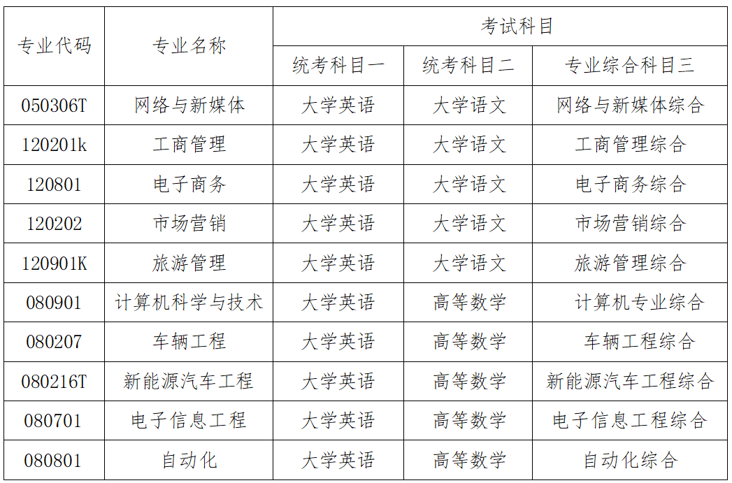 招生专业及考试科目
