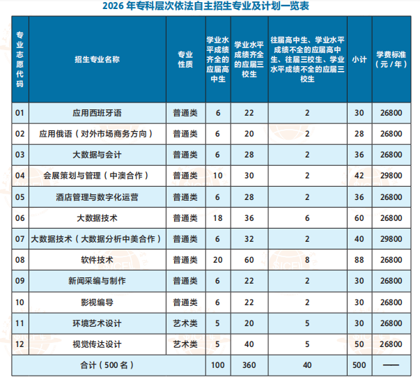 注:2.艺术类专业:环境艺术设计、视觉传达设计与普通类专业不得兼报。