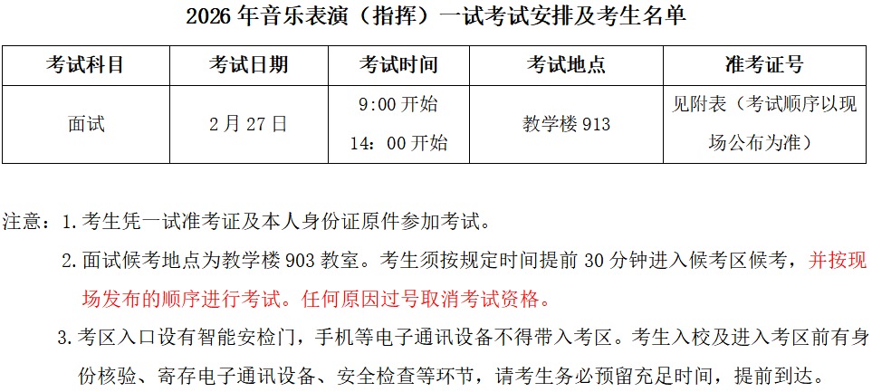 音乐表演(指挥)面试02月27日上午913教室