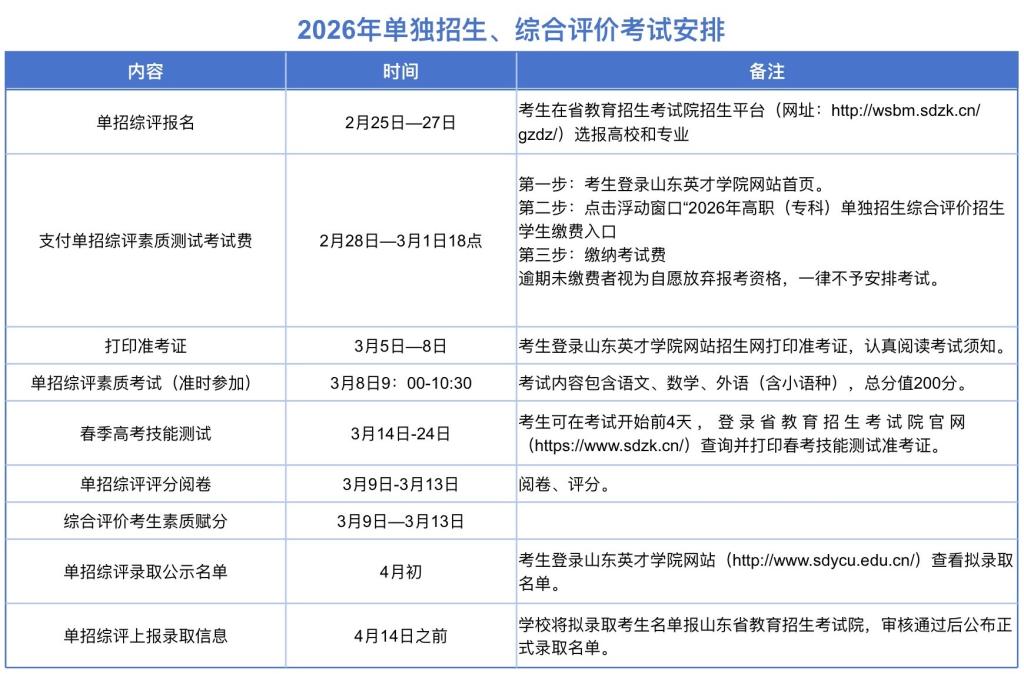 2026年单招综评考试安排