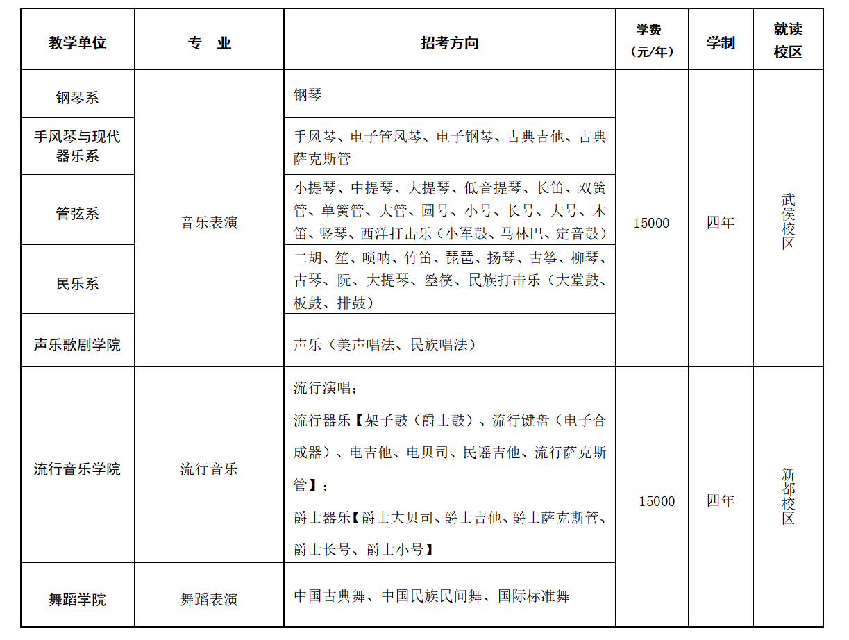 四川音乐学院关于2026年招收华侨港澳台学生的