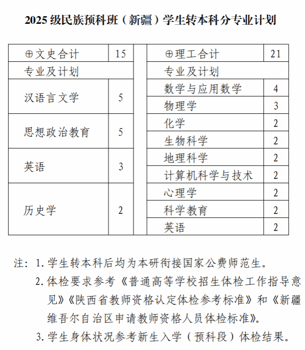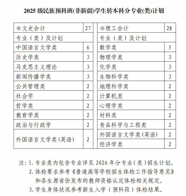 2025级预科学生结业转本科专业及计划