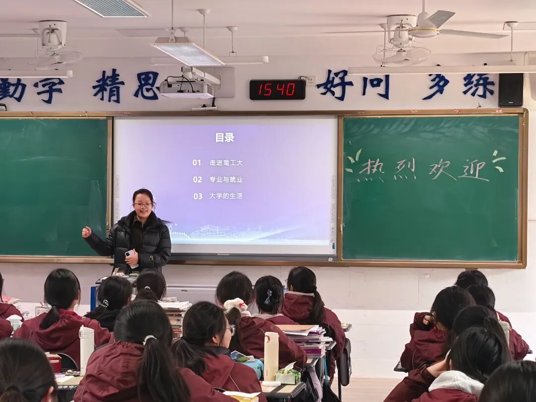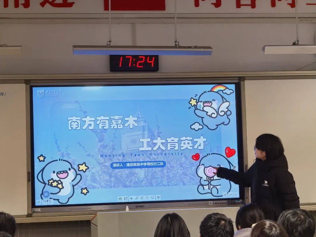 02队员王晨沣分享道:本次活动不仅让高三文科班的同学们对南京工业大学有了更立体、更亲近的认识,也极大地锻炼了我个人的综合能力。作为PPT制作者,我学会了如何根据受众特点筛选信息、设计视觉呈现;作为宣讲者,我克服了面对公众演讲的紧张感,提升了语言表达与临场应变能力;作为拍照记录者,我学会了用镜头捕捉精彩瞬间。更重要的是,从江宁到江浦,从坐在台下听讲的学弟到站在台上分享的学长,我真切体会到“传承”二字的重量——是母校培养了我,如今我能以工大学子的身份反哺母校,这是一份莫大的光荣。