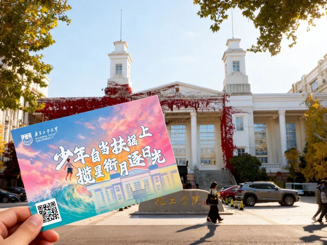 今年9月,招办将对照新生名单——凡成功考入南京工业大学的同学,可在报到当天收获招办精心准备的南工大定制专属未来明信片套装及打卡留念。