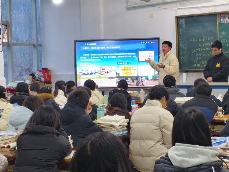 2026年2月2日下午,四川省高县中学2023级电子融通班的教室迎来了一场特别的“学长课堂”。来自成都航空职业技术大学的“星火‘翼’起”社会实践团队重返母校,以“航空筑梦、星火相传”为主题,通过专题讲解、互动交流与模型体验,为学弟学妹带来了一堂生动的“航空成长课”。