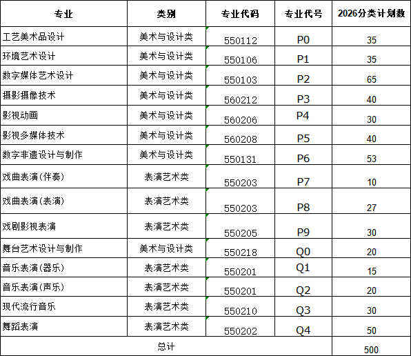 陕西艺术职业学院2026年各专业分类招生计划一览表