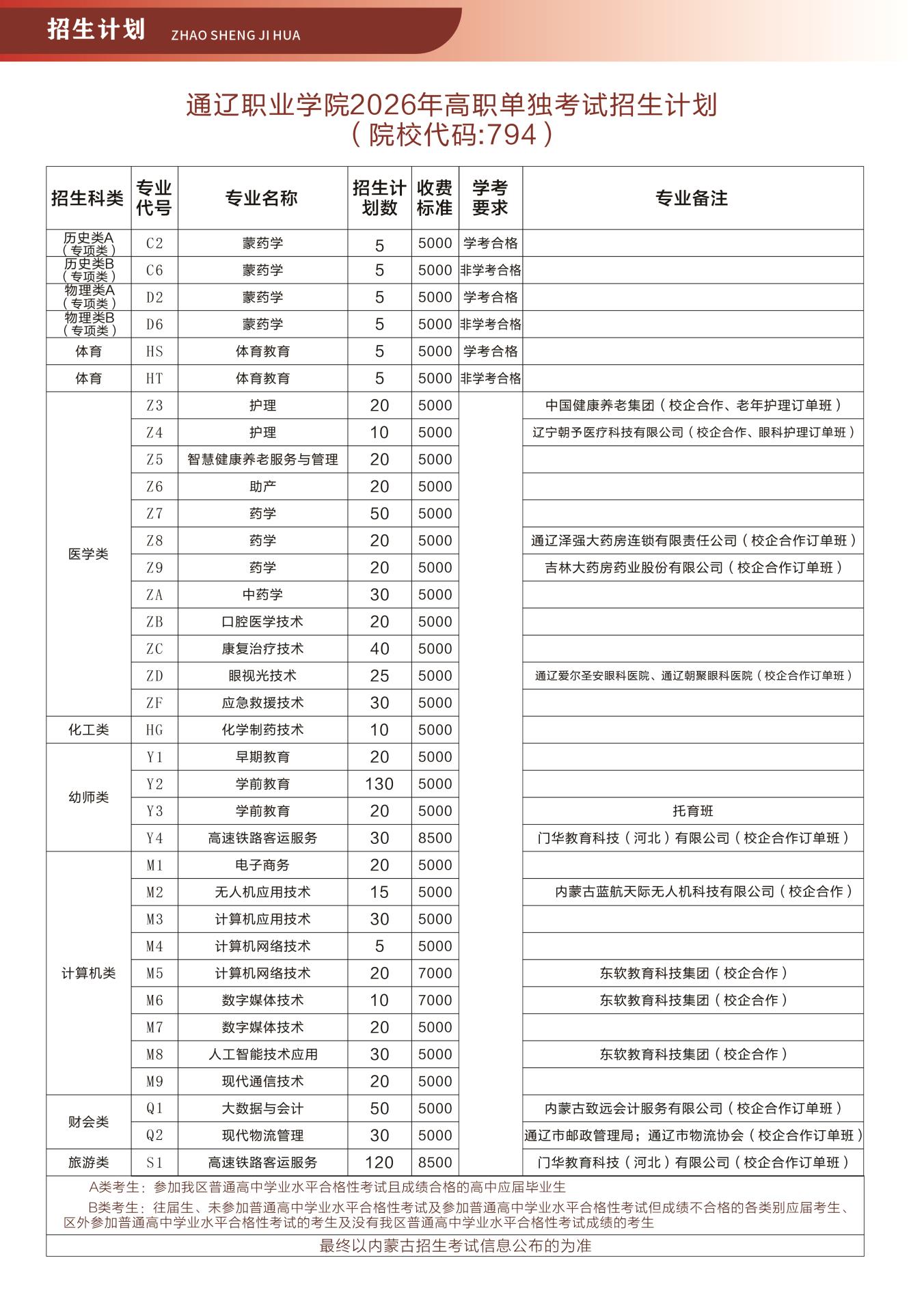 2026年单独招生考试计划