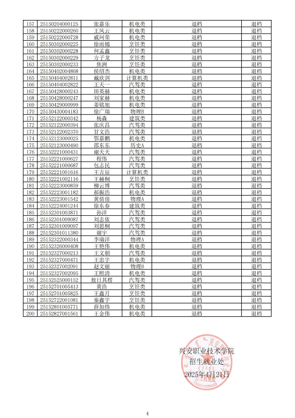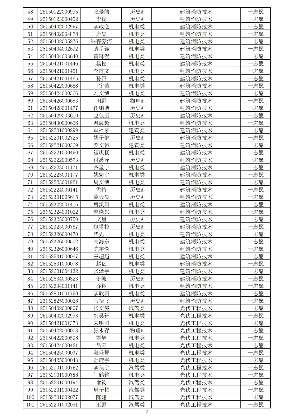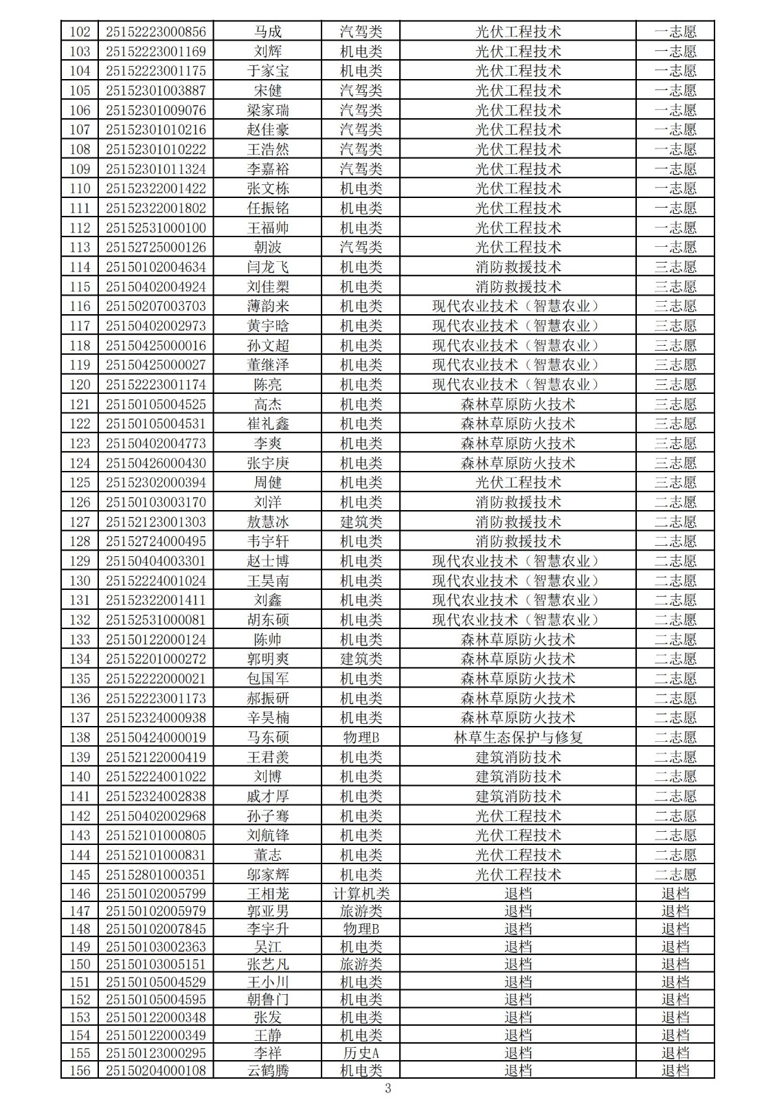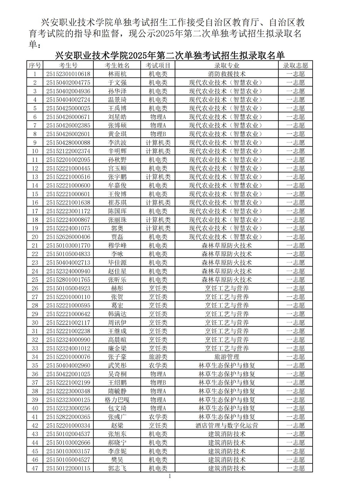 兴安职业技术学院2025年第二次单独考试招生拟录取名单