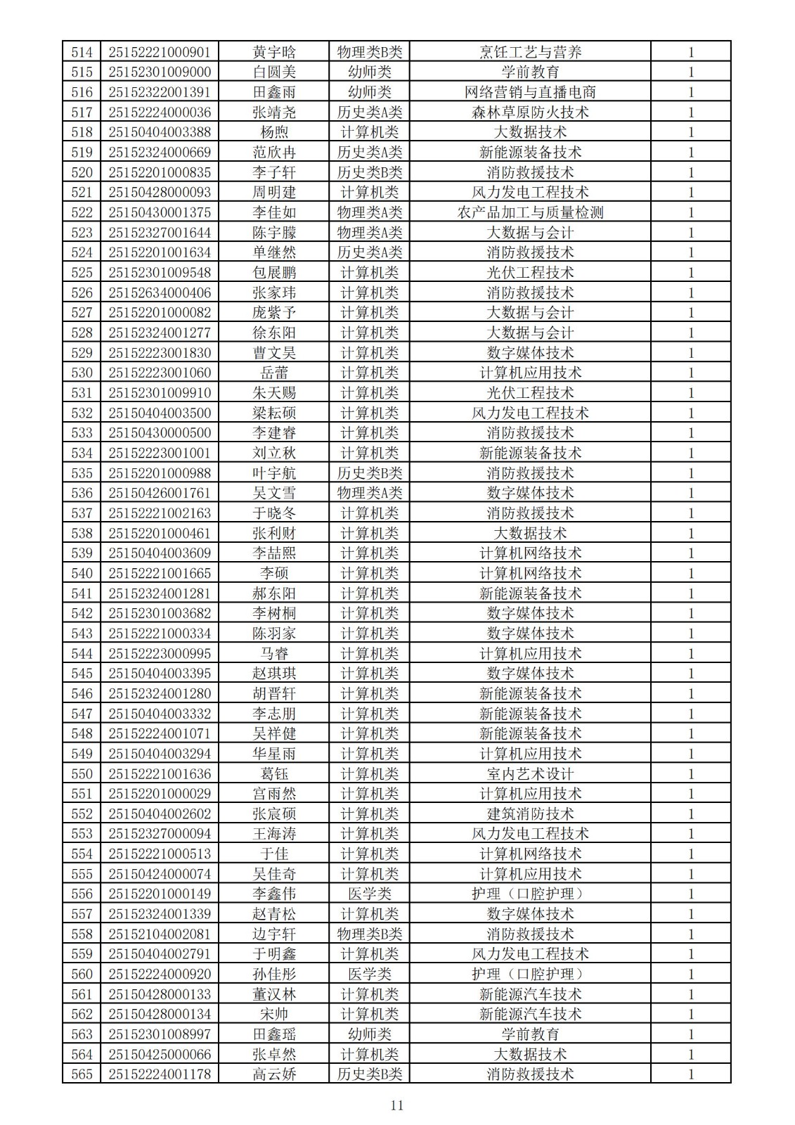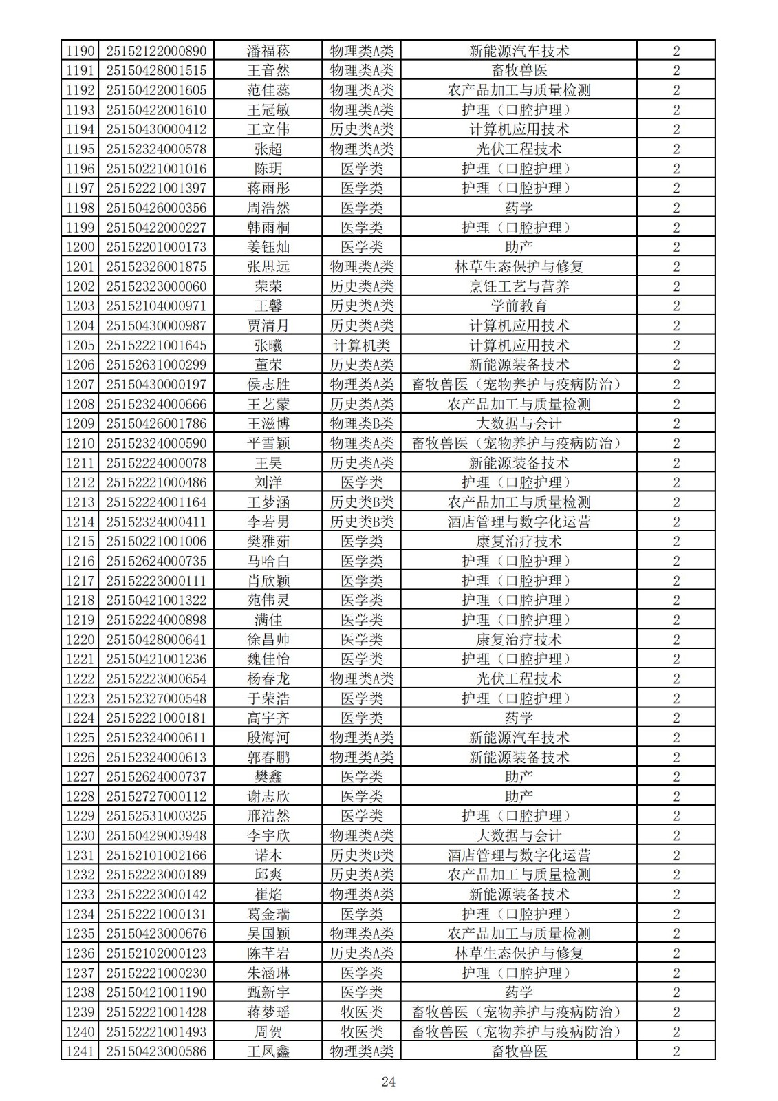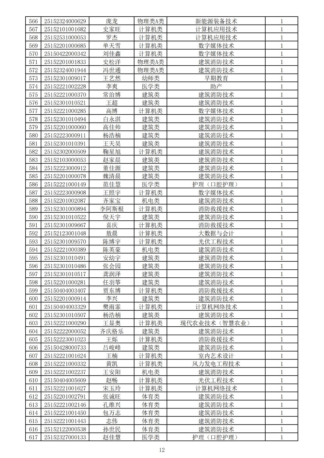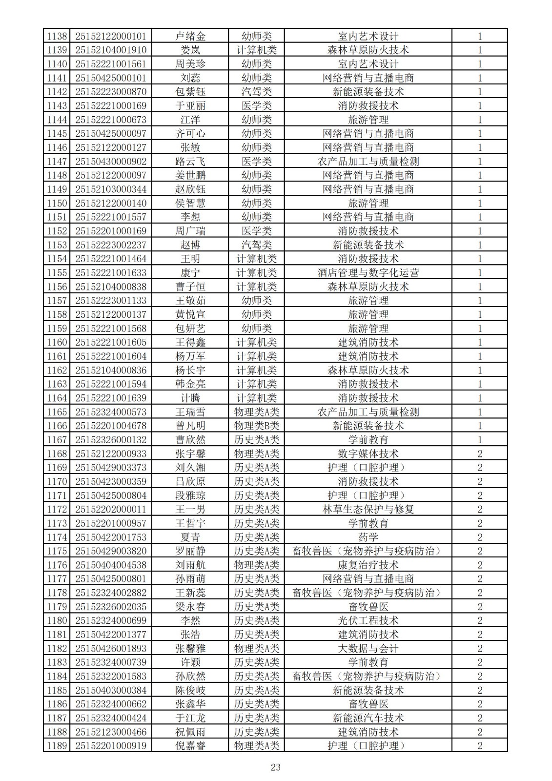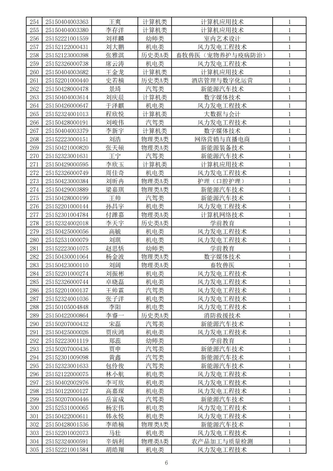 兴安职业技术学院2025年第一次单独考试招生拟录取名单
