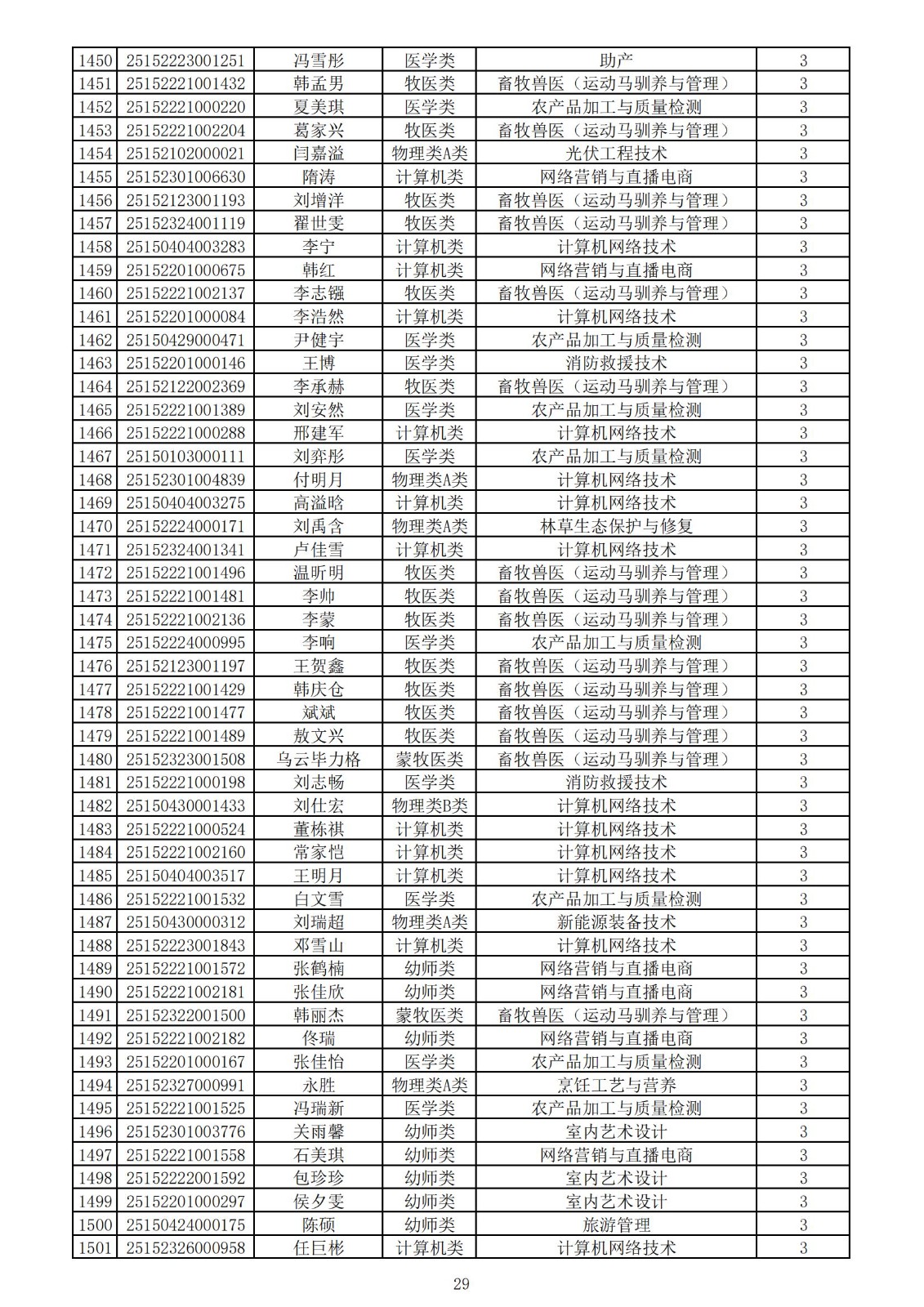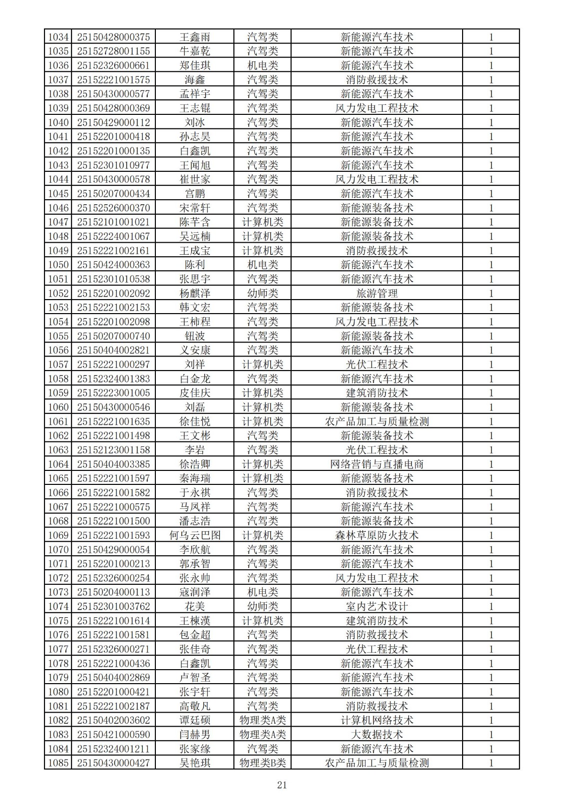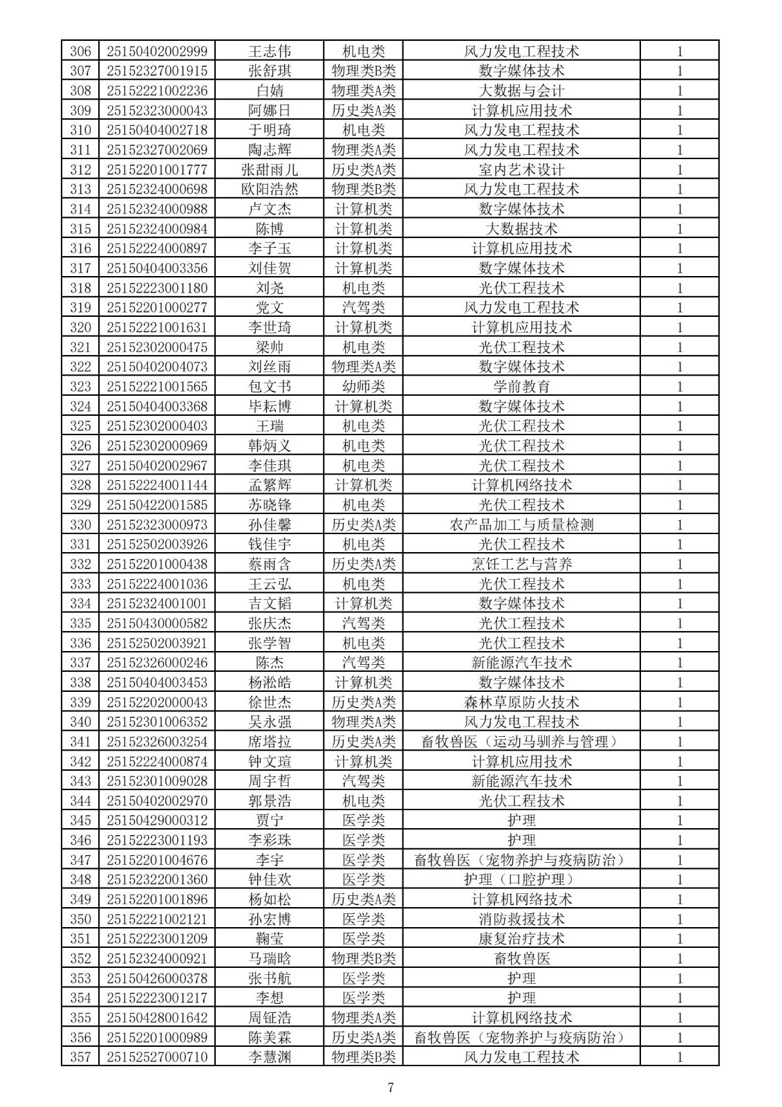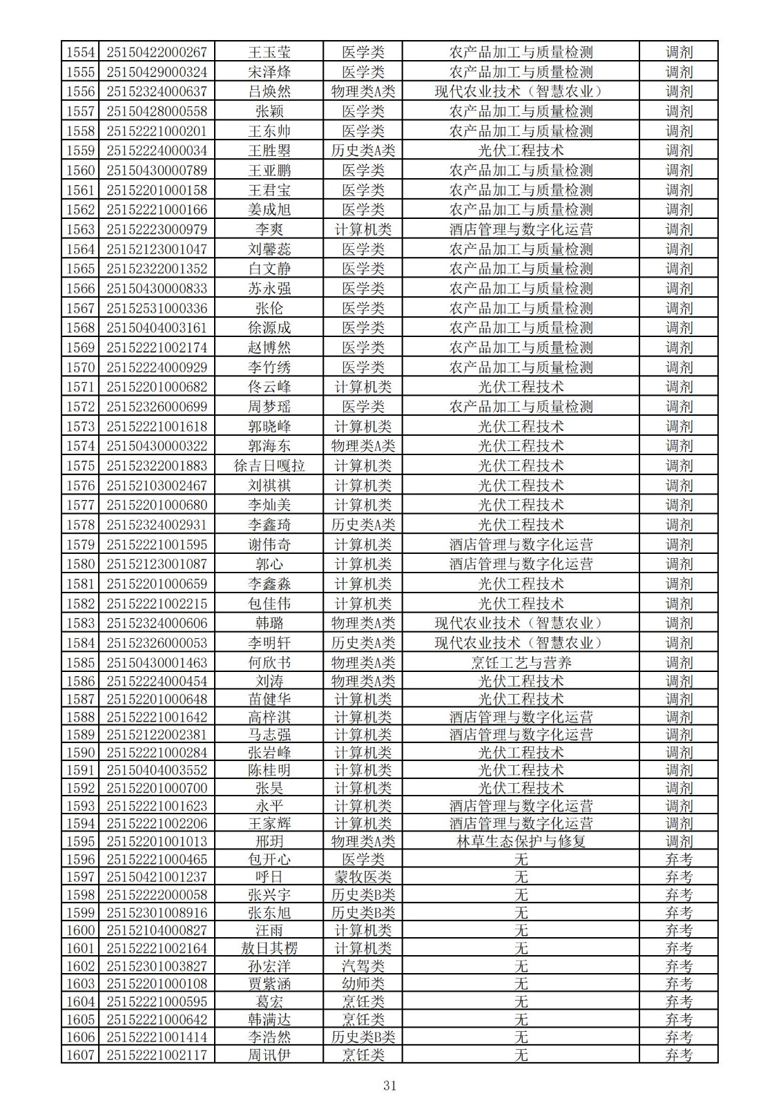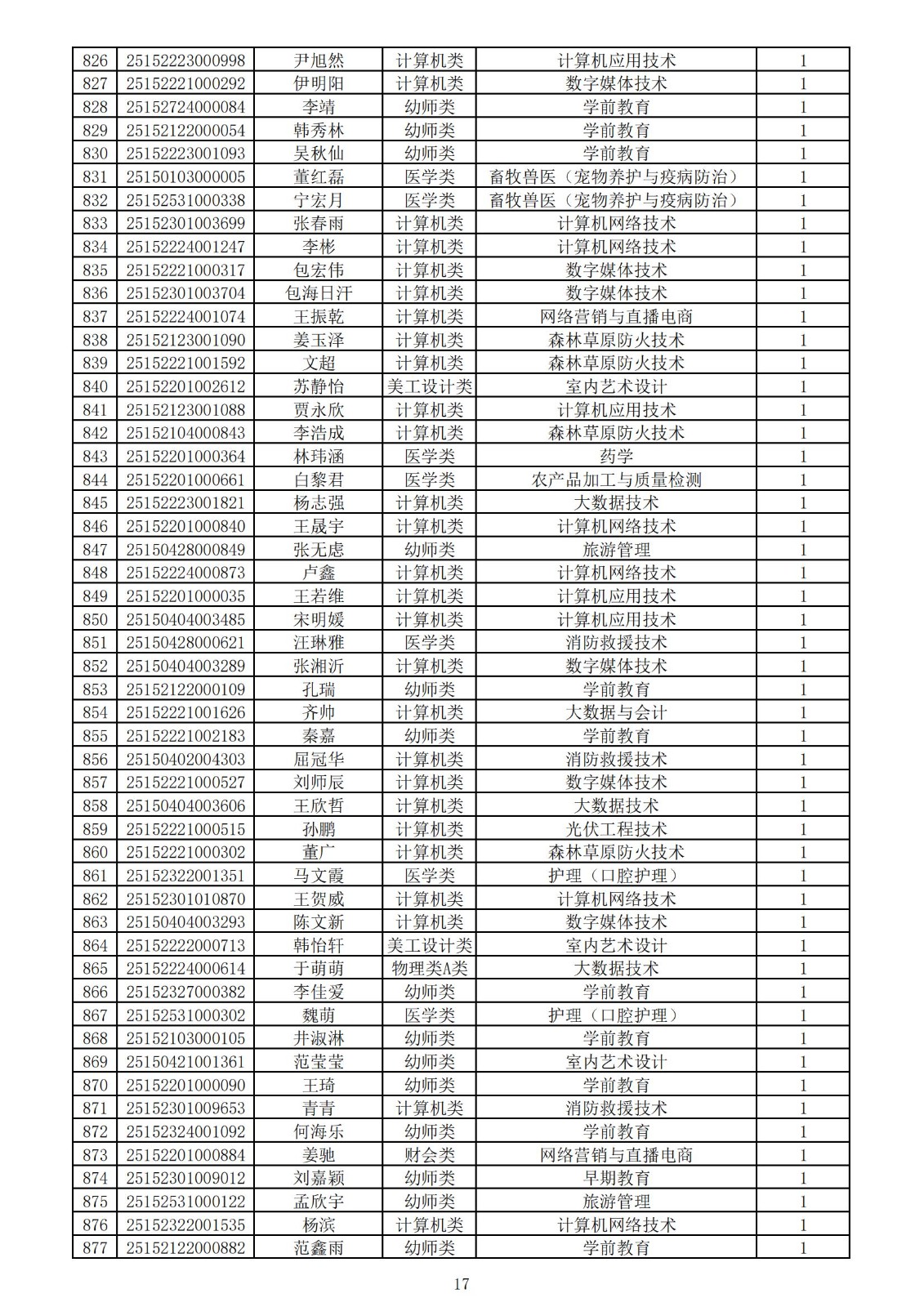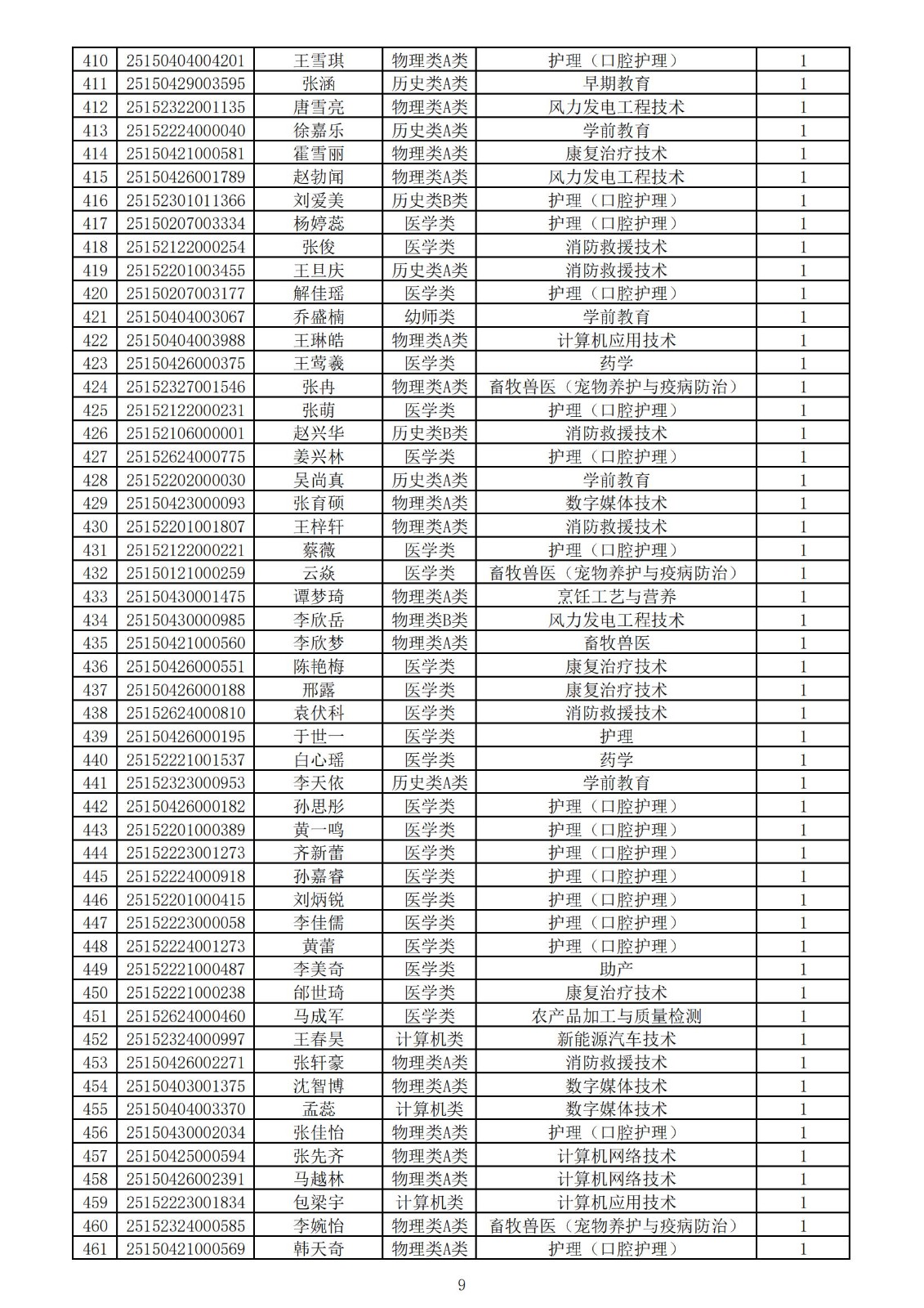 兴安职业技术学院2025年第一次单独考试招生拟录取名单