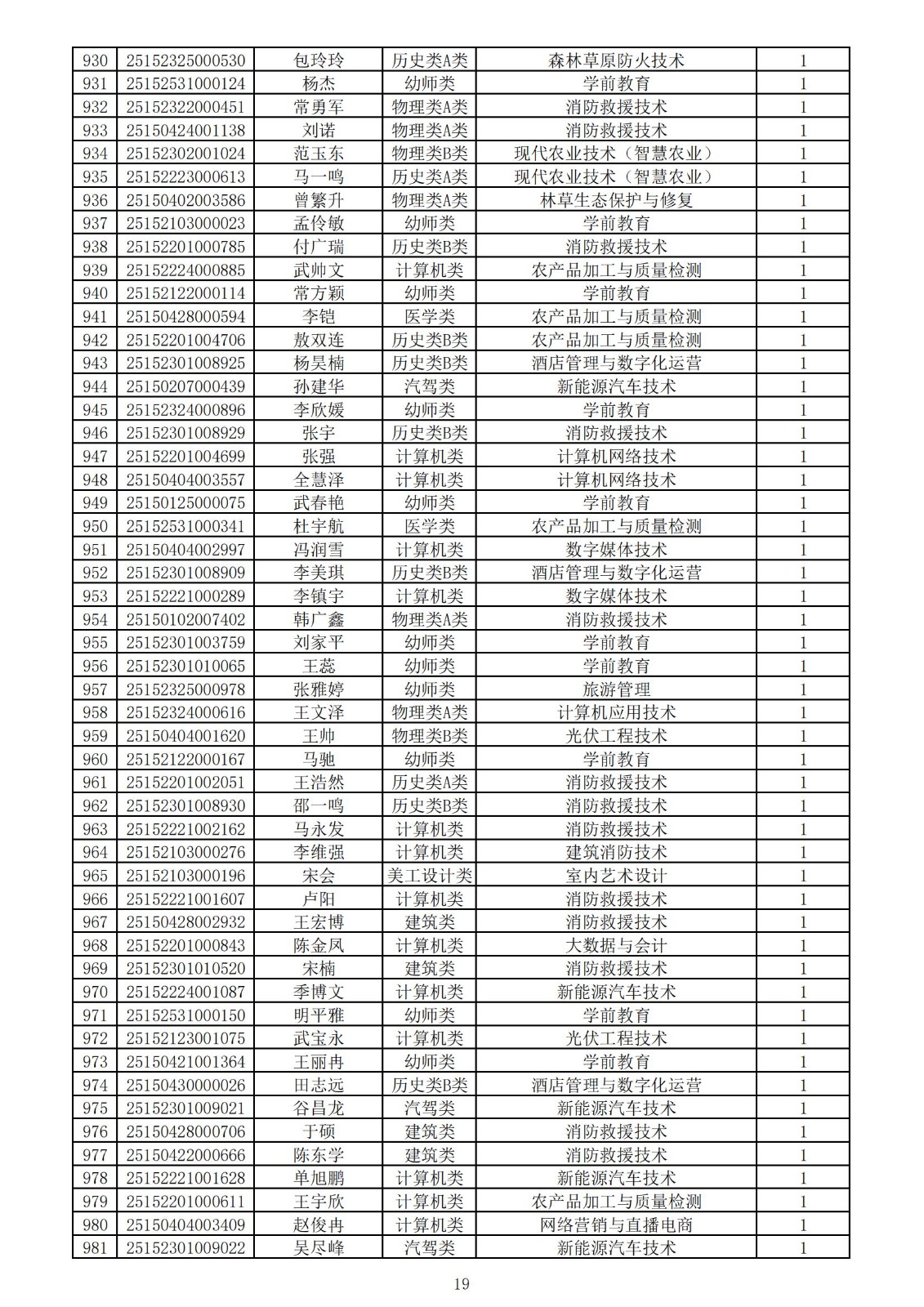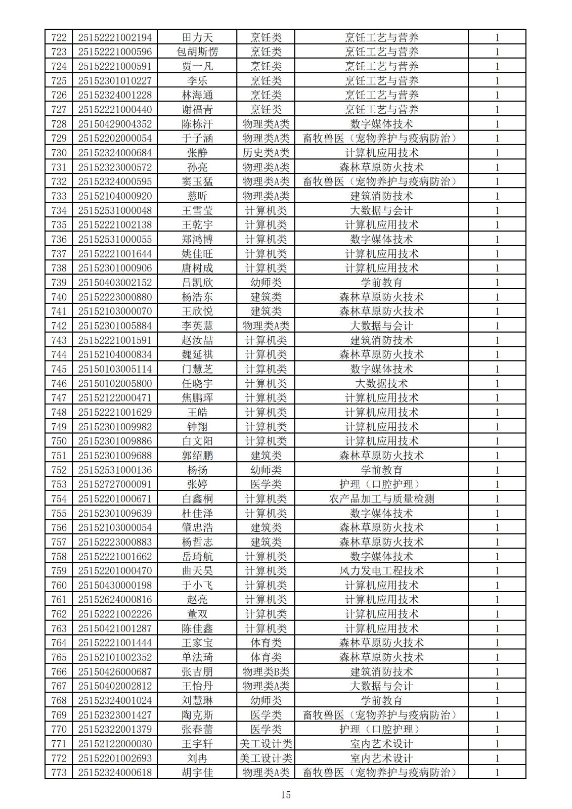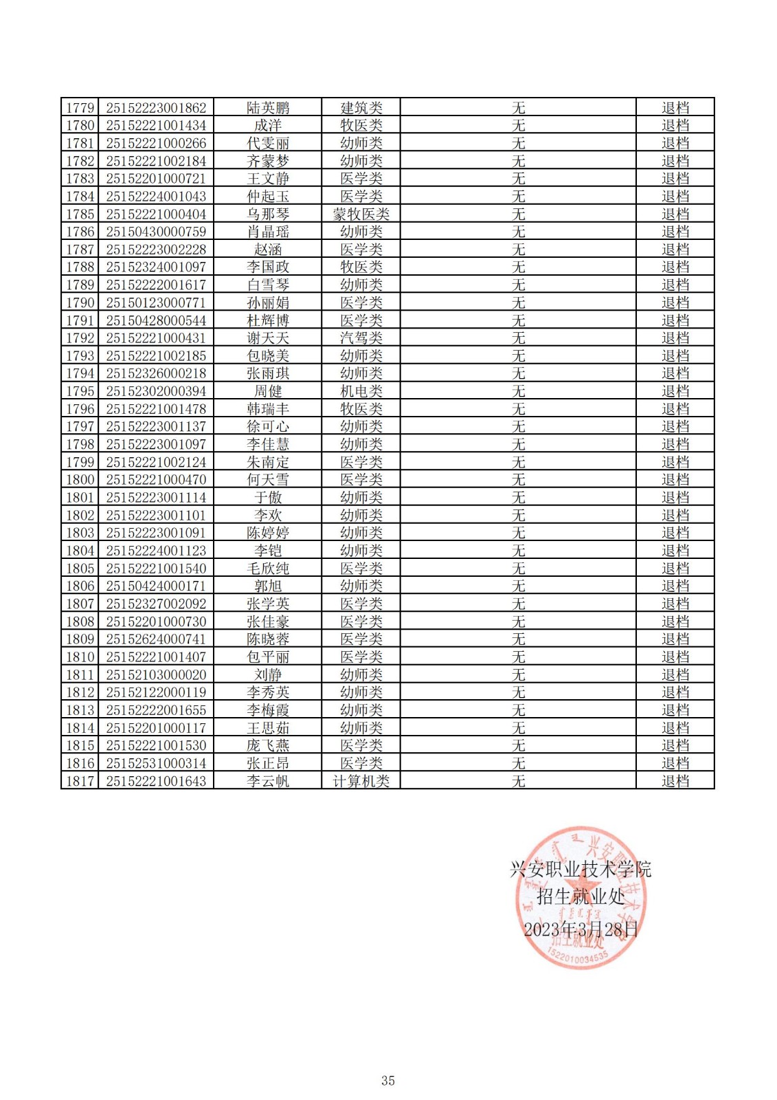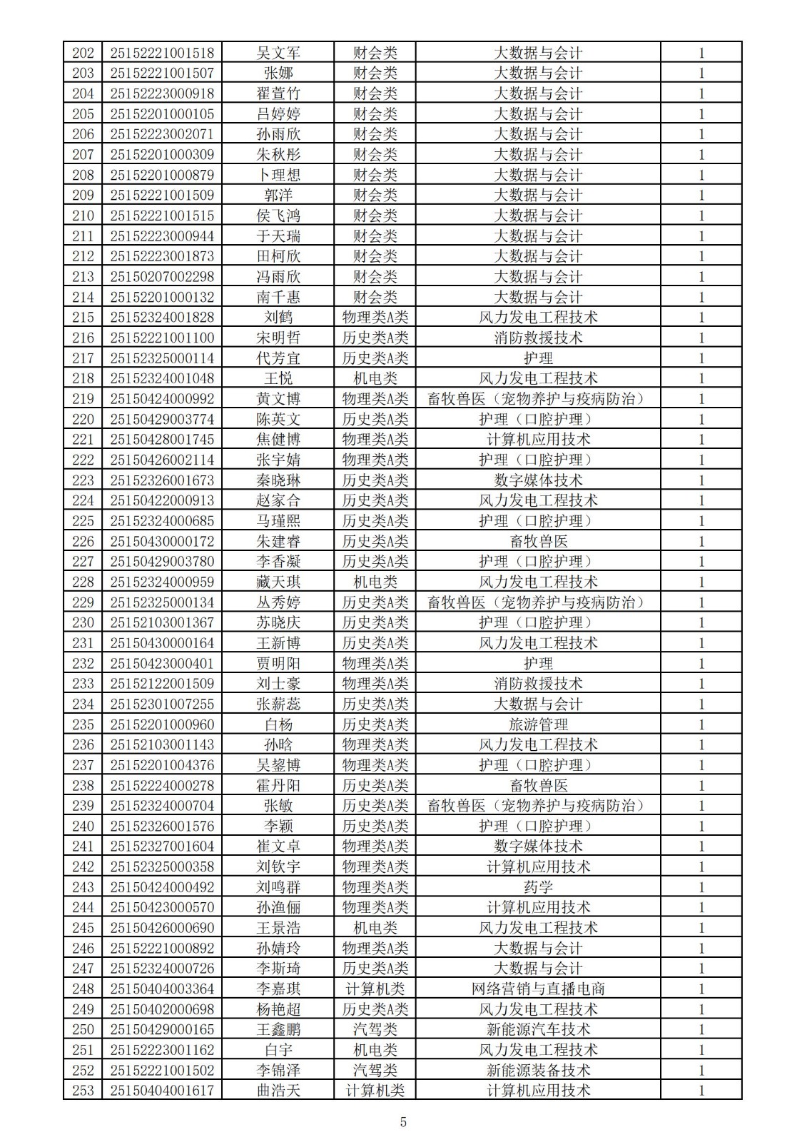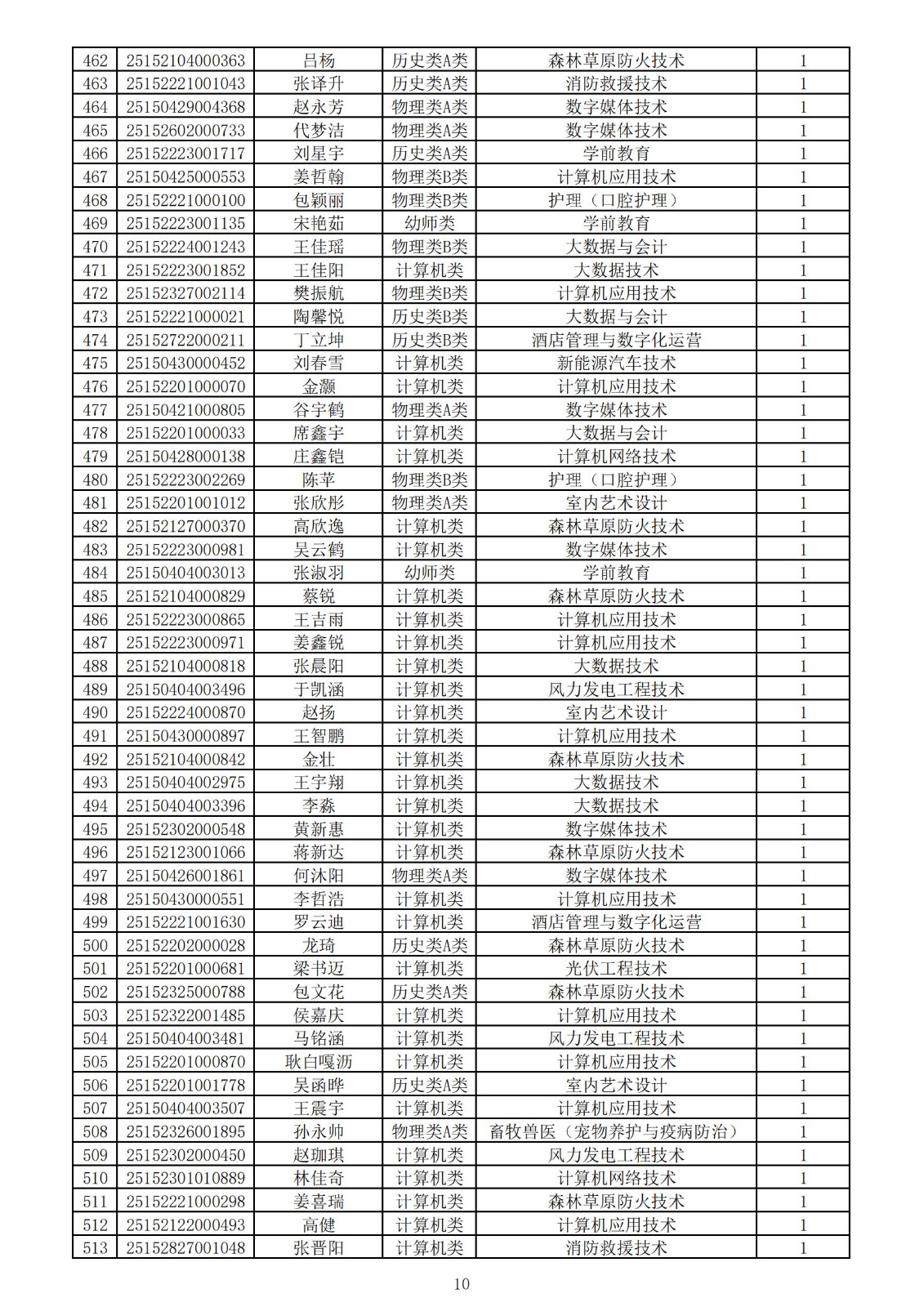 兴安职业技术学院2025年第一次单独考试招生拟录取名单