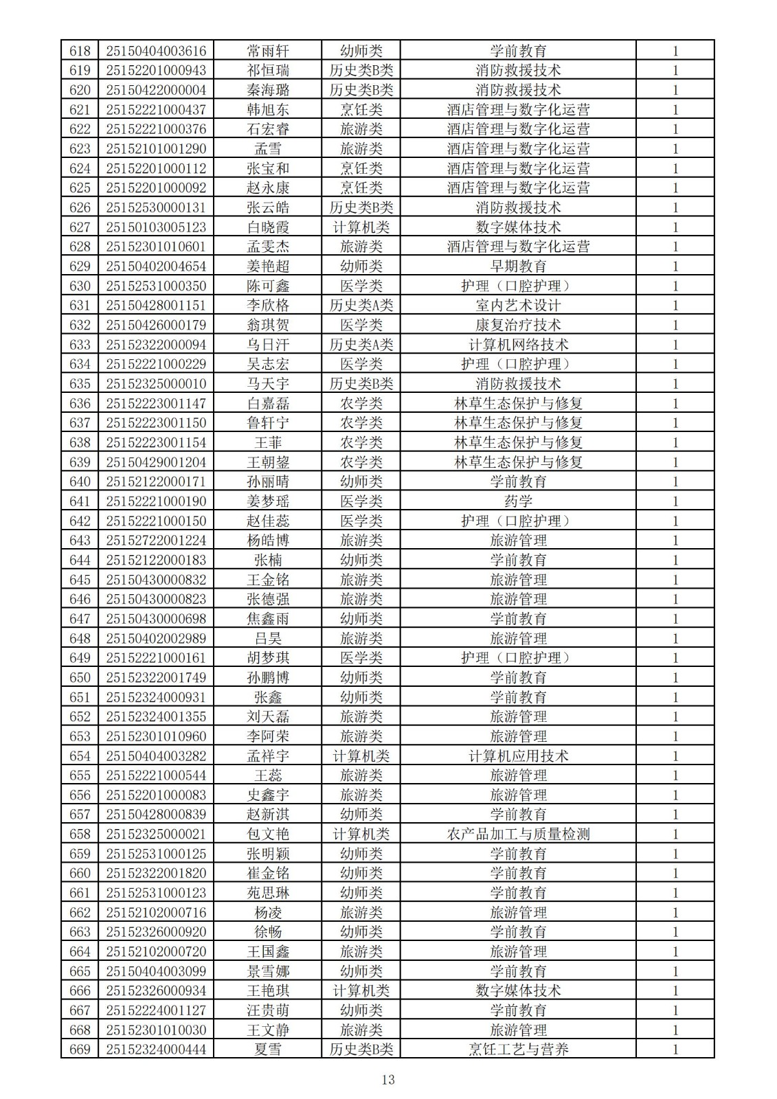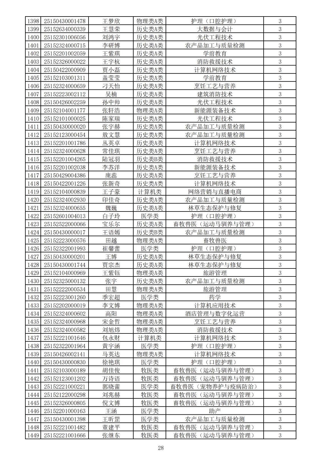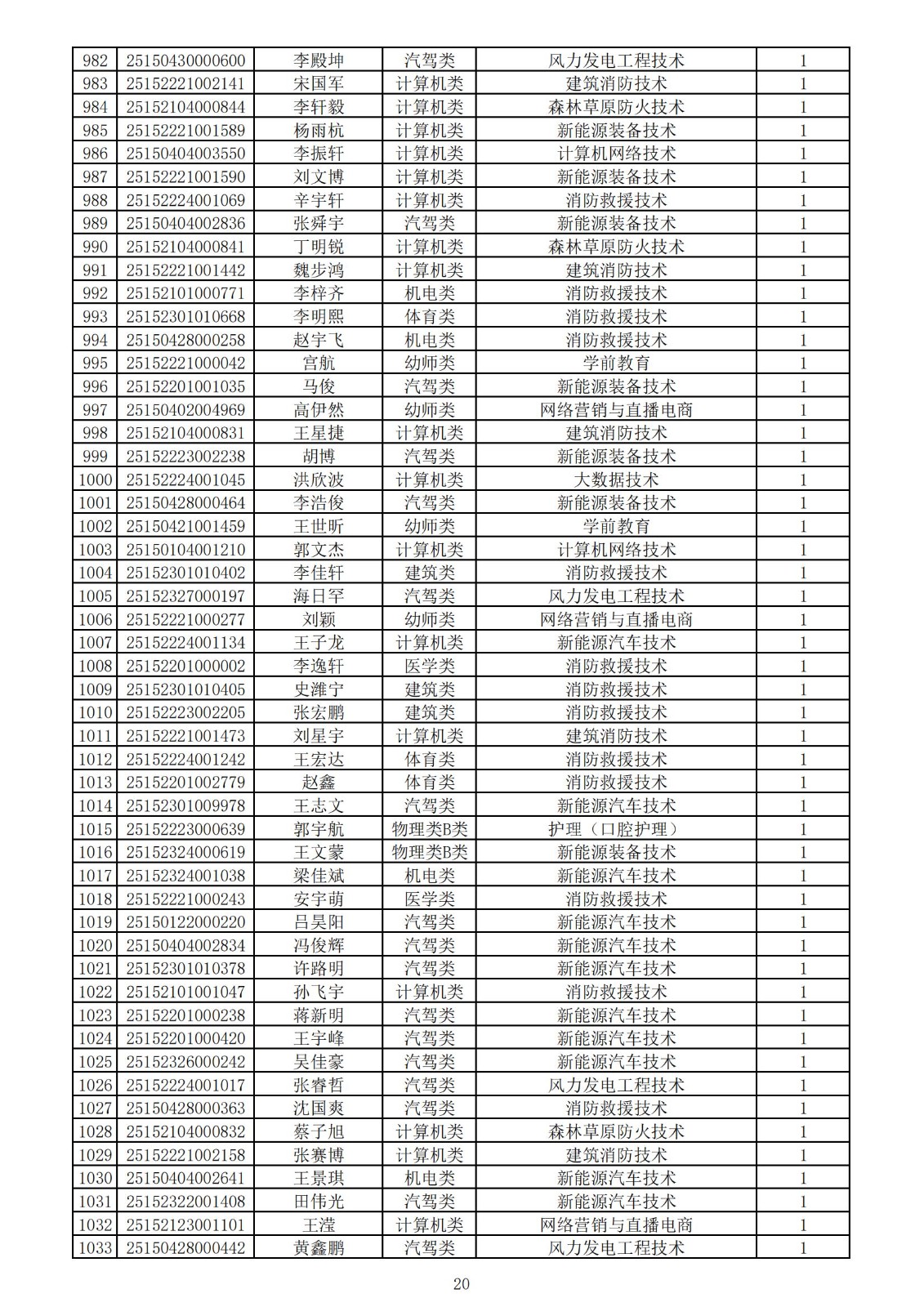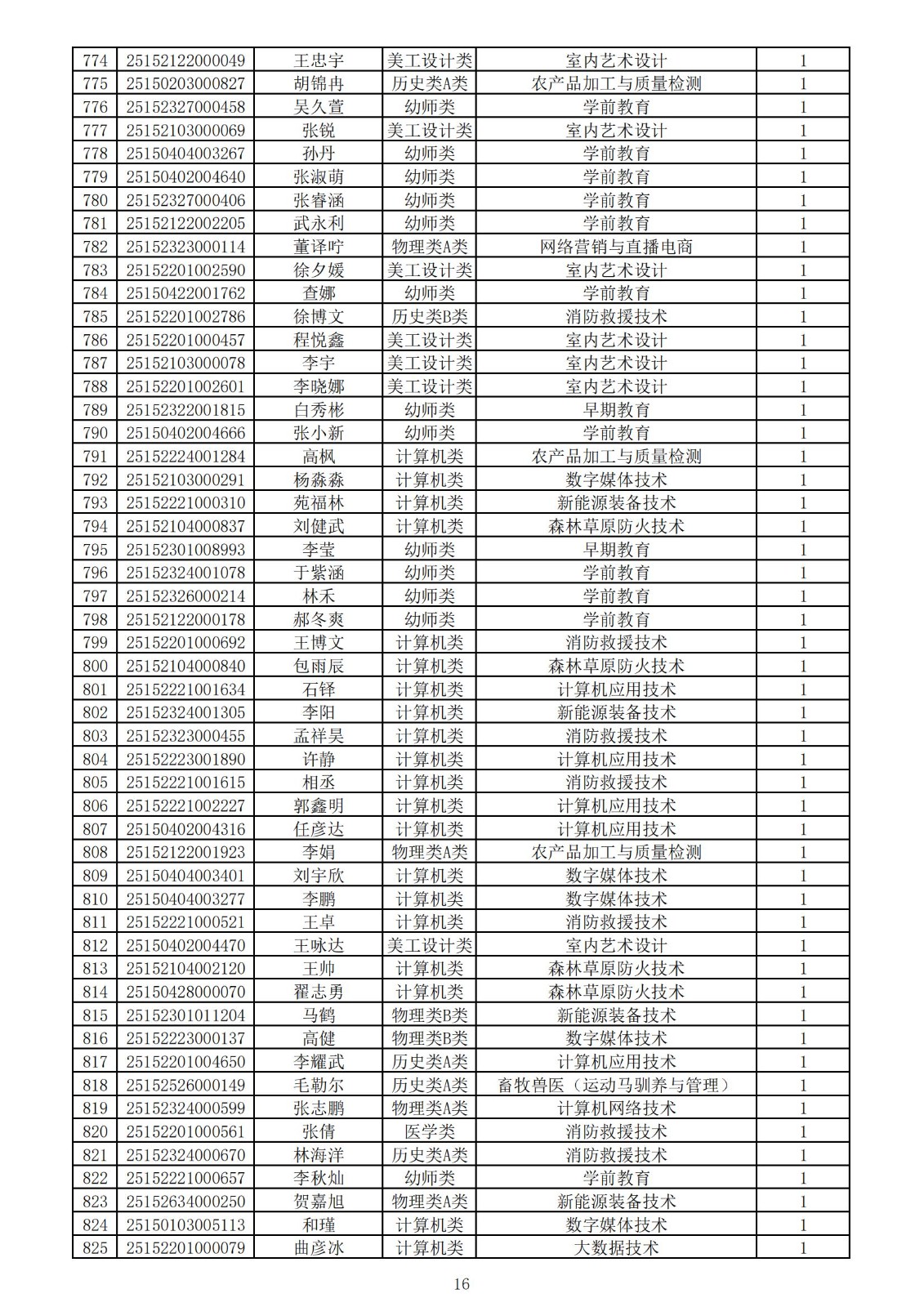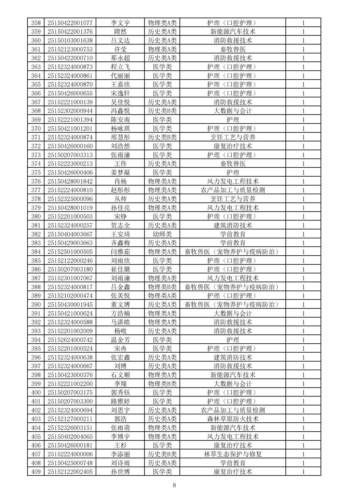 兴安职业技术学院2025年第一次单独考试招生拟录取名单