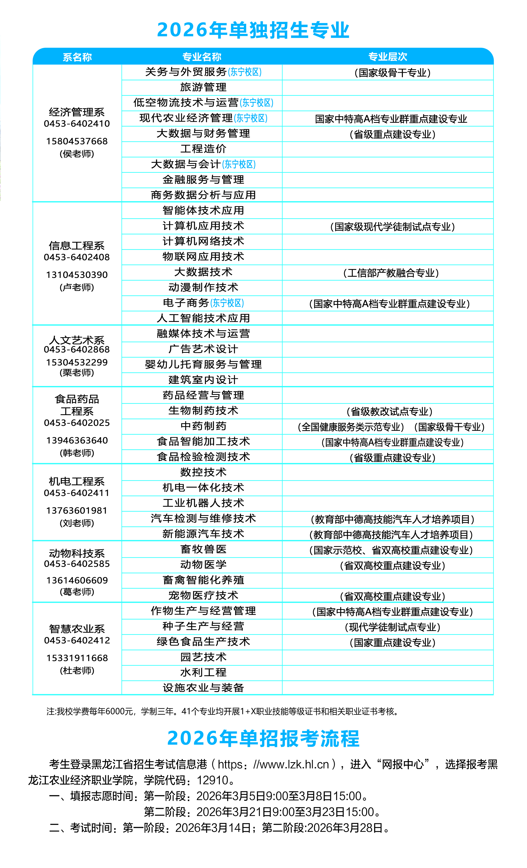 黑龙江农业经济职业学院2026年单独招生简章(报考代码12910)