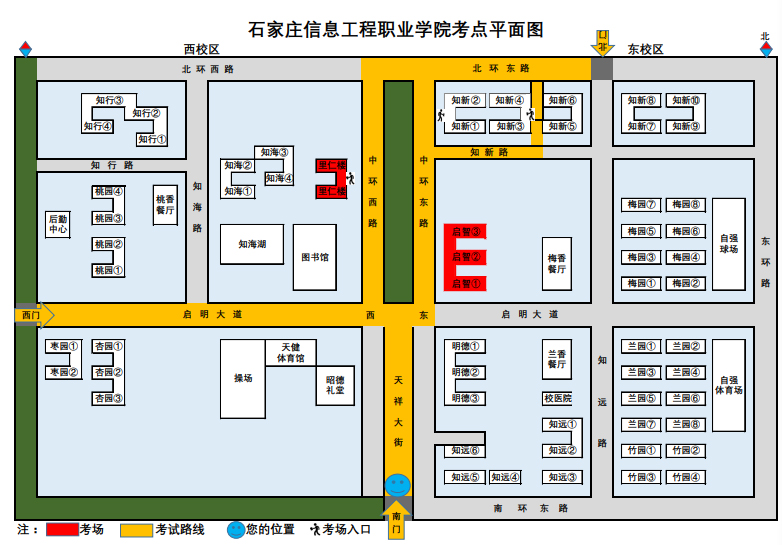 2、石家庄信息工程职业学院(地址:河北省石家庄市藁城区天祥大街81号),考场分布在启智楼和里仁楼。