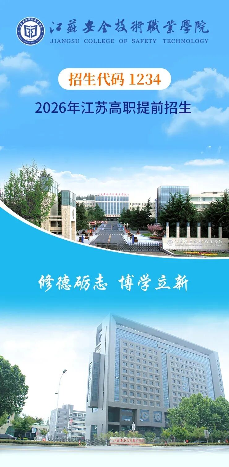 往期推荐江苏安全技术职业学院 2026年江苏高职提前招生简章发布!苏安院2025年度“十大新闻”祝贺!我校毕业生斩获全国智能制造应用技术技能大赛金奖!