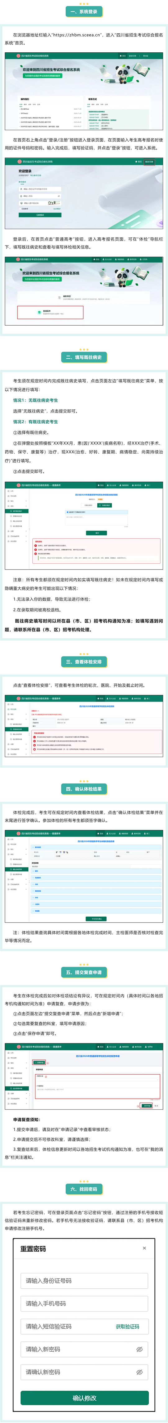 参加2026年高考体检的考生(含高职单招考生)须登录四川省招生考试综合报名系统(https://zhbm.sceea.cn)填写既往病史、查看体检安排、确认体检结果和提交复查申请。