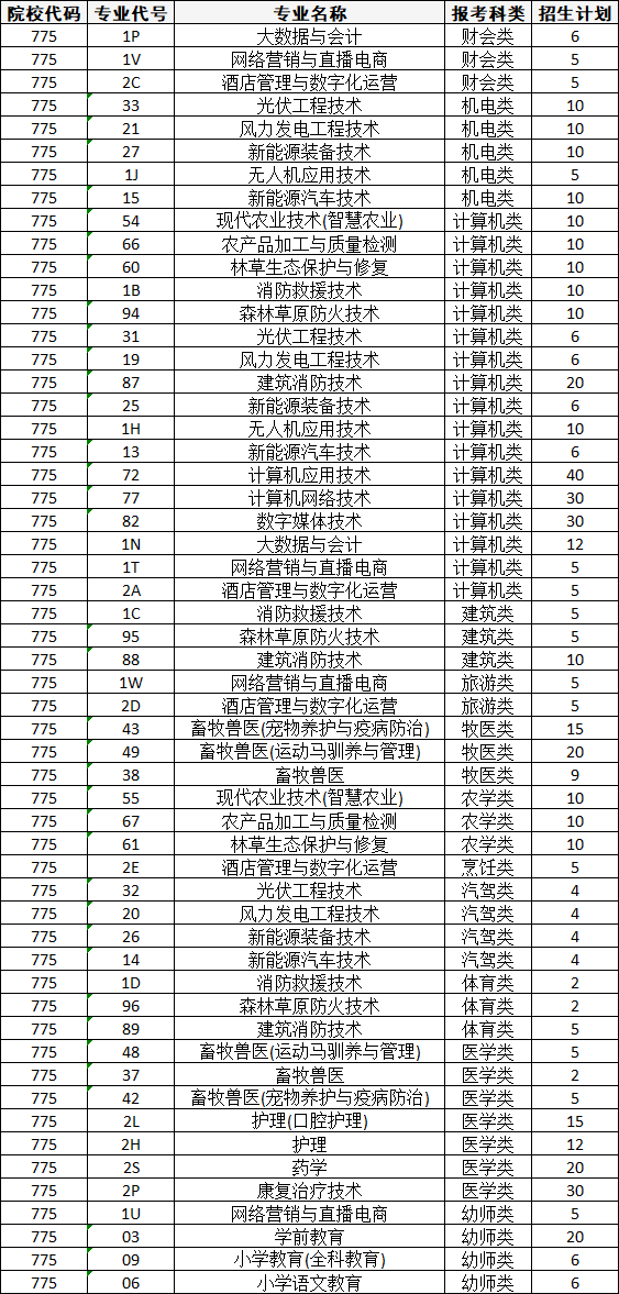 单招招生专业及代码 对口类 学校代码77503