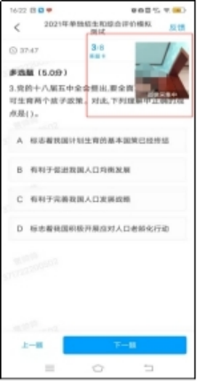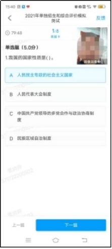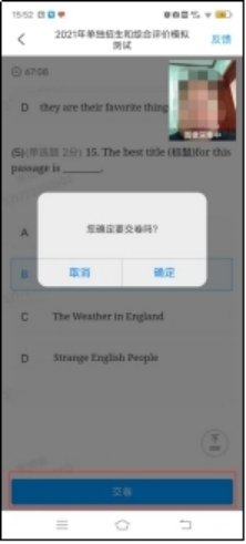 ★答题过程中,如果碰到图像采集窗口遮挡题干造成无法答题的情况,可以跳过此题,在最后的“交卷”页面进行答题(“交卷”页面会显示所有题目,也可以在“交卷”页面上进行答题)。