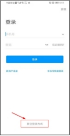 第一步:打开学习通APP,选择“其他登录方式”。注意:如果考生原来就有学习通的账号,请勿使用原来的账号登录,必须使用如下图所示“其他登录方式”登录,否则将无法收到考试通知消息。
