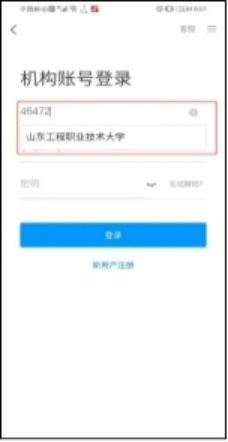 第二步:输入机构代码:46472,选择山东工程职业技术大学,输入账号密码并登录。